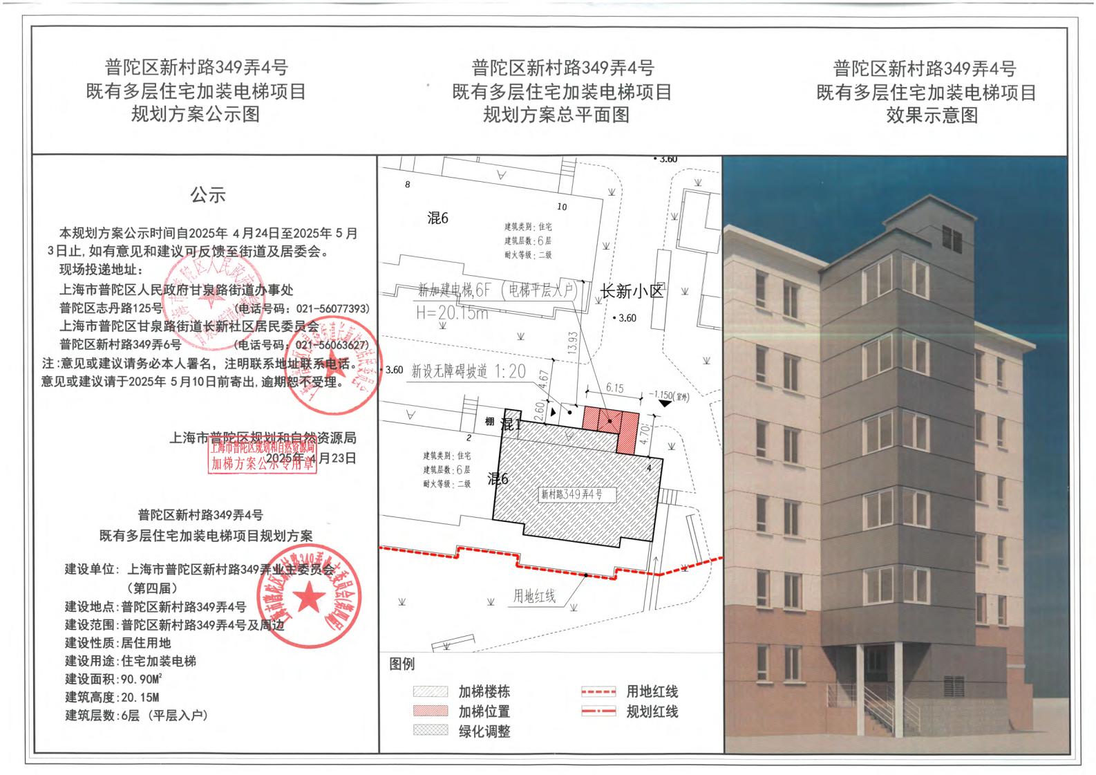 普陀区新村路349弄4号既有多层住宅加装电梯项目规划方案公示