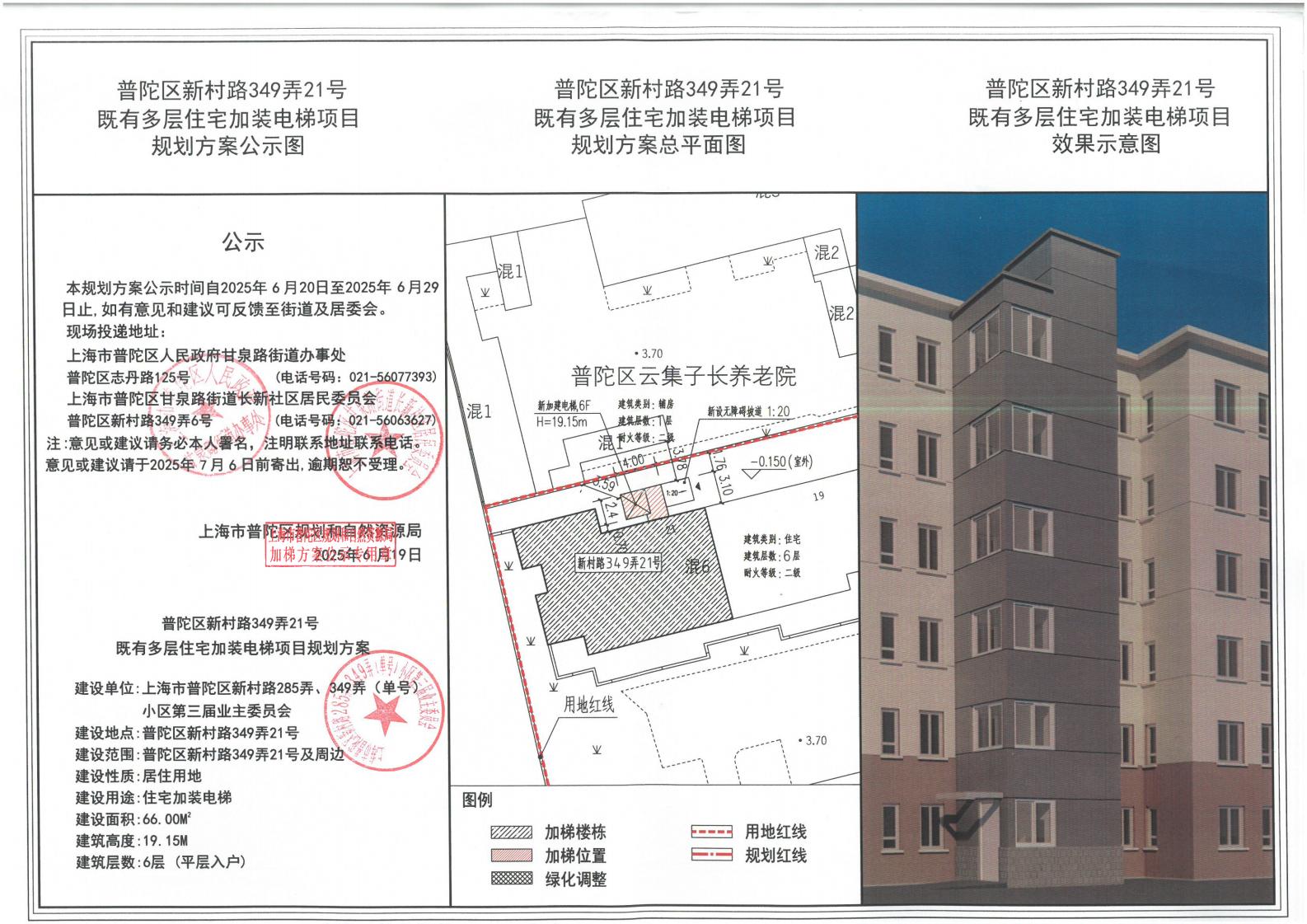 普陀区新村路349弄21号既有多层住宅加装电梯项目规划方案公示