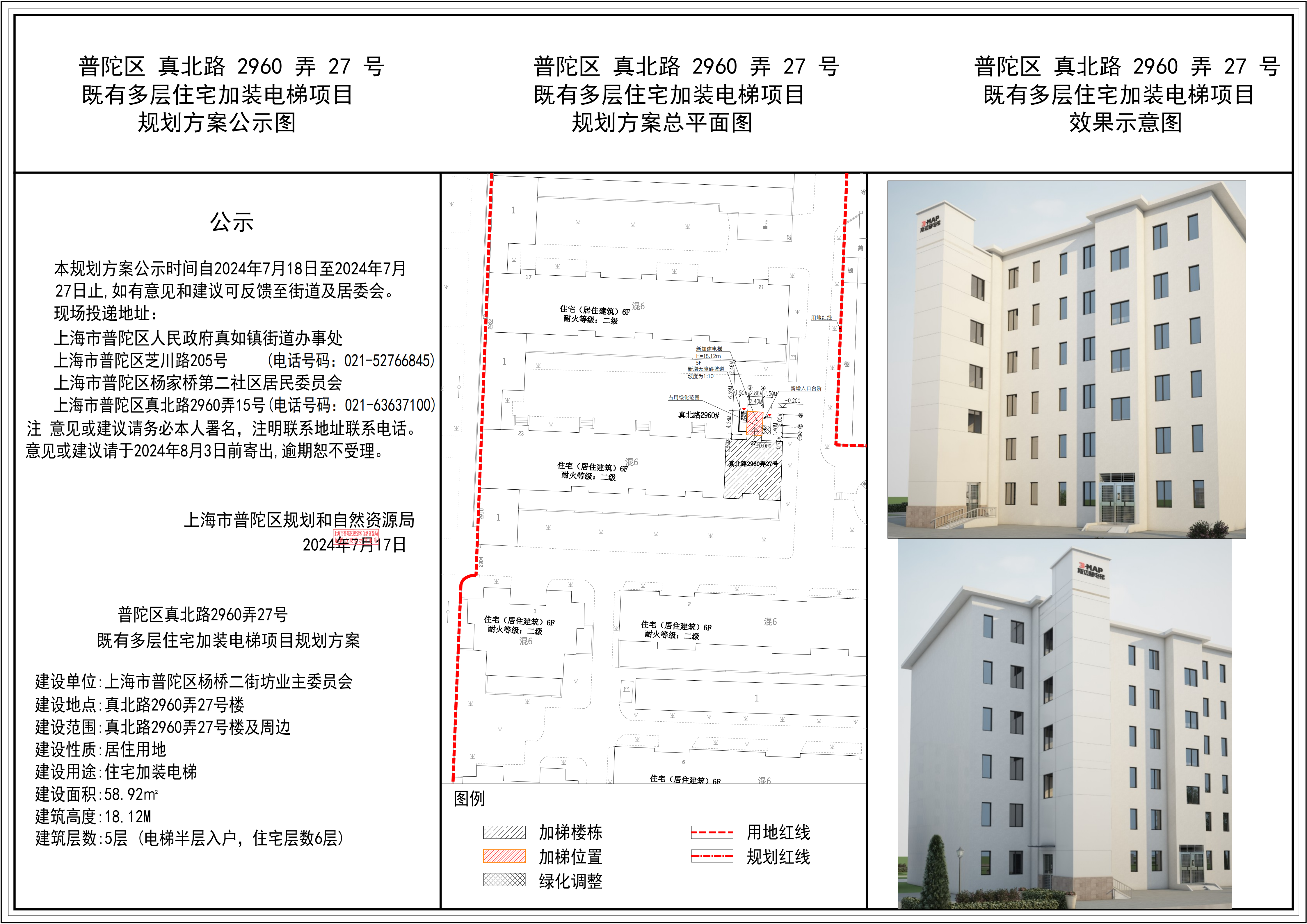 普陀区真北路2960弄27号既有多层住宅加装电梯项目规划方案公示