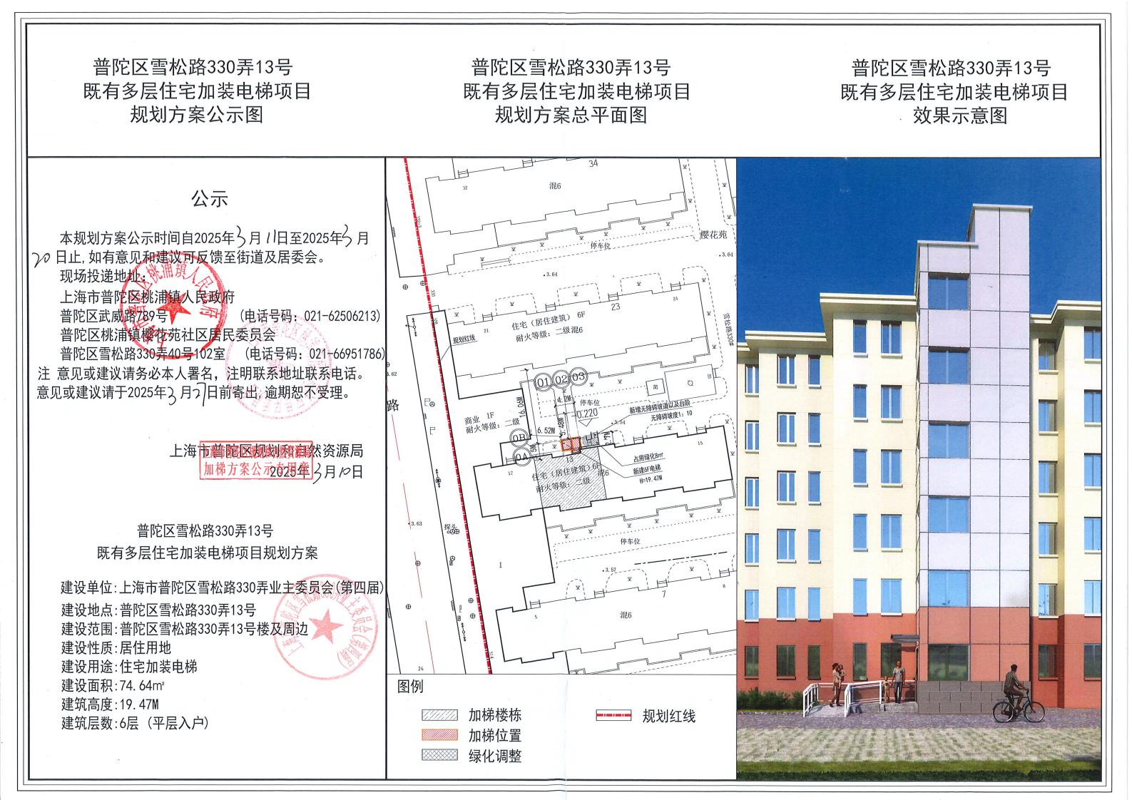 普陀区雪松路330弄13号既有多层住宅加装电梯项目规划方案公示