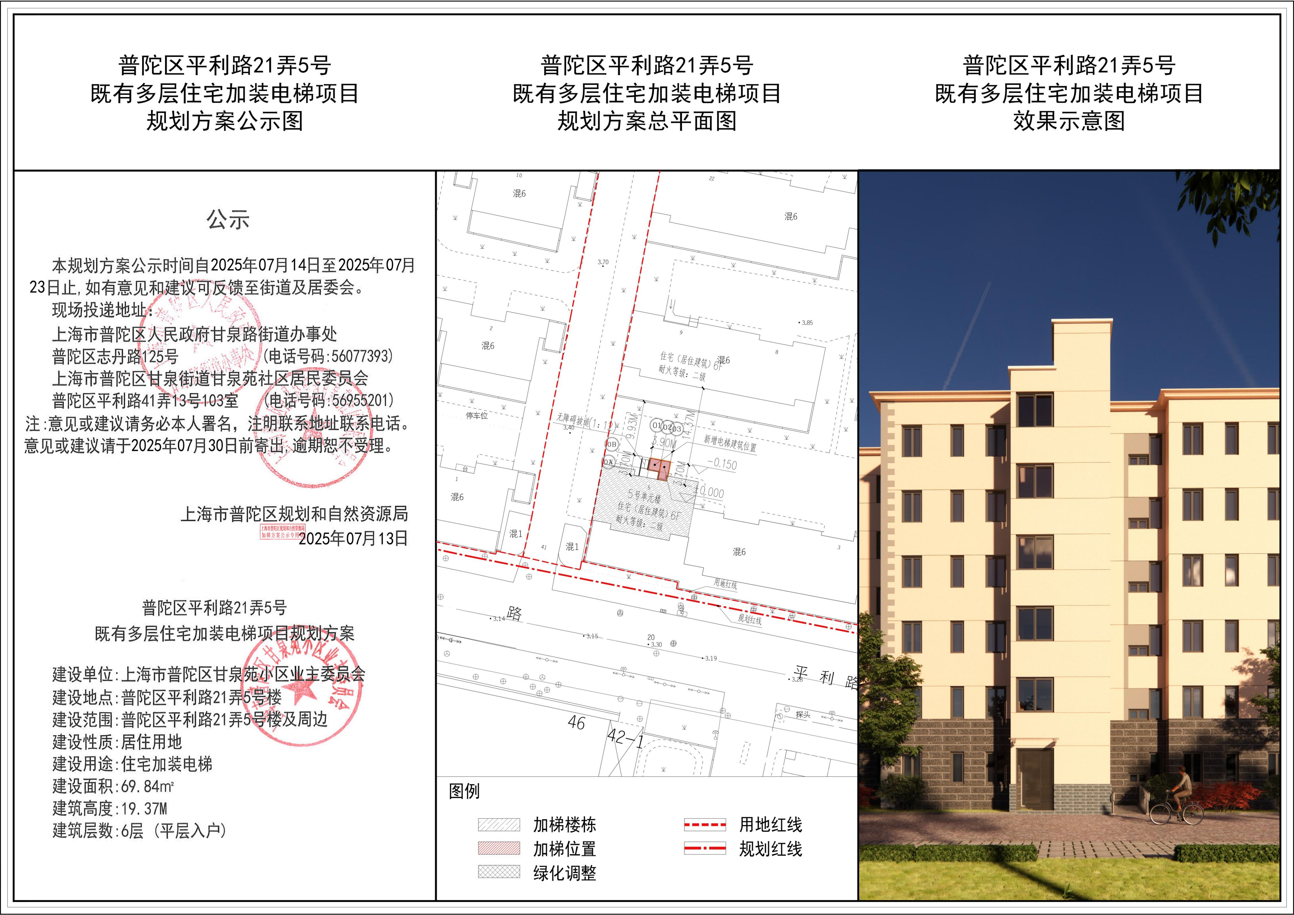 普陀区平利路21弄5号既有多层住宅加装电梯项目规划方案公示