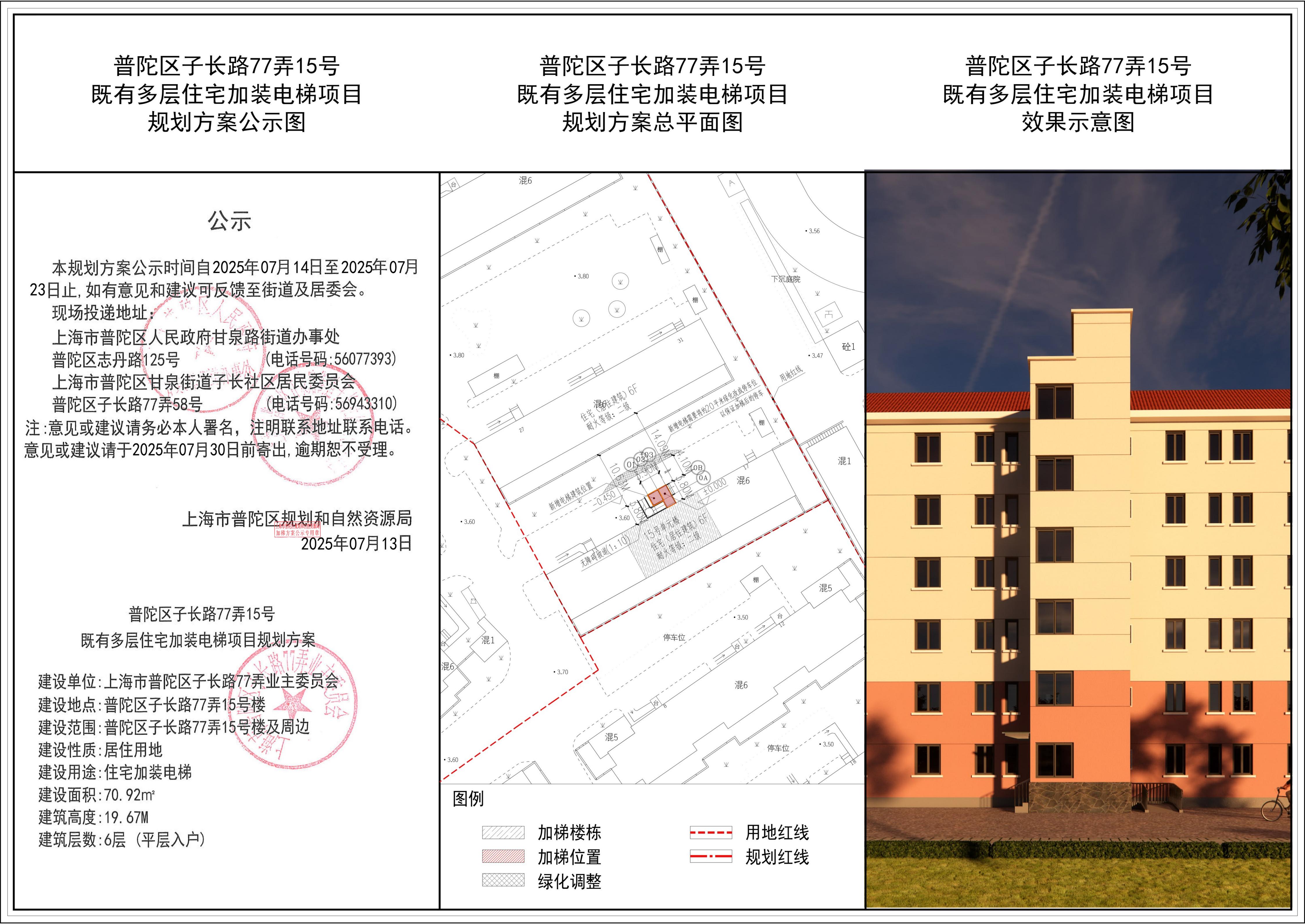 普陀区子长路77弄15号既有多层住宅加装电梯项目规划方案公示