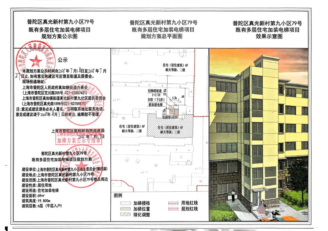 普陀区真光新村第九小区79号既有多层住宅加装电梯项目规划方案公示