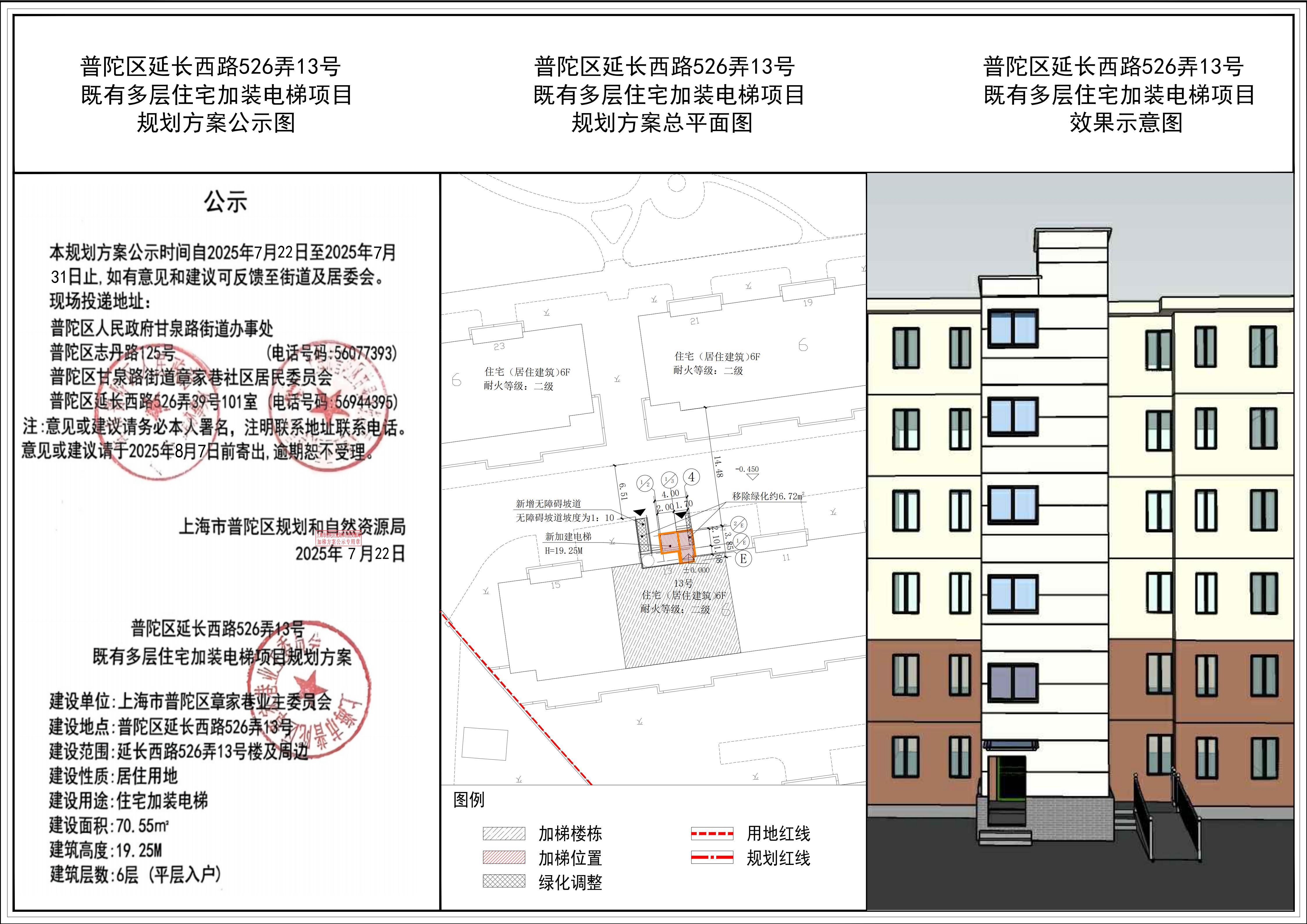 普陀区延长西路526弄13号既有多层住宅加装电梯项目规划方案公示