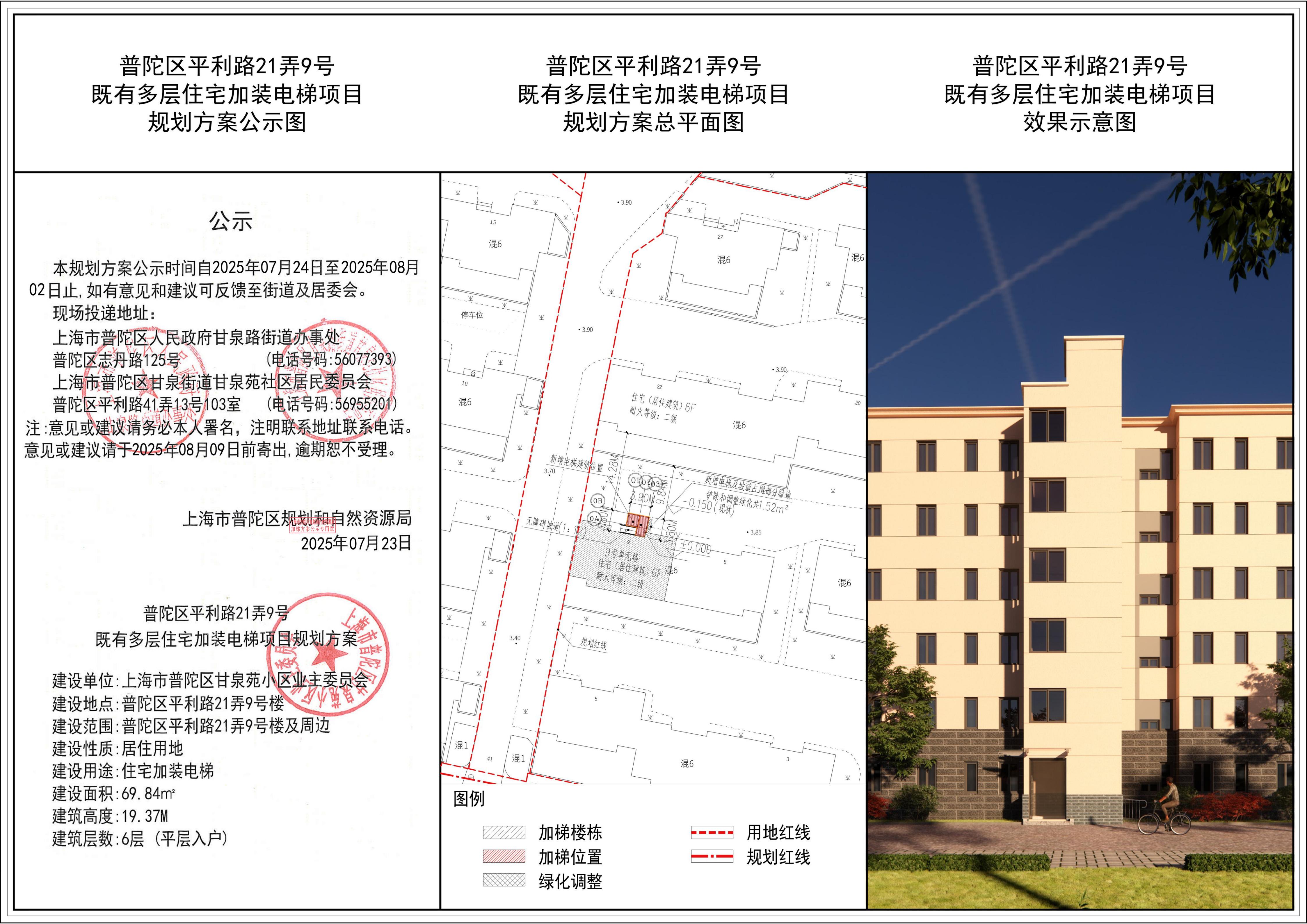 普陀区平利路21弄9号既有多层住宅加装电梯项目规划方案公示