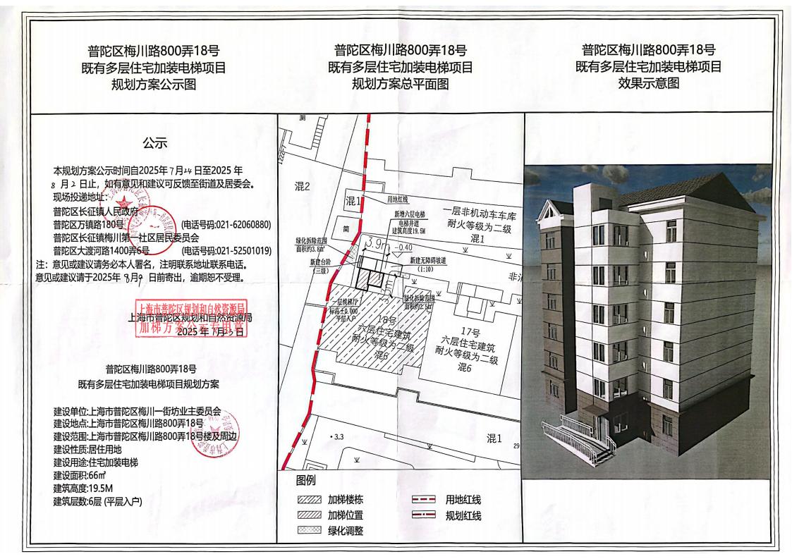 普陀区梅川路800弄18号既有多层住宅加装电梯项目规划方案公示