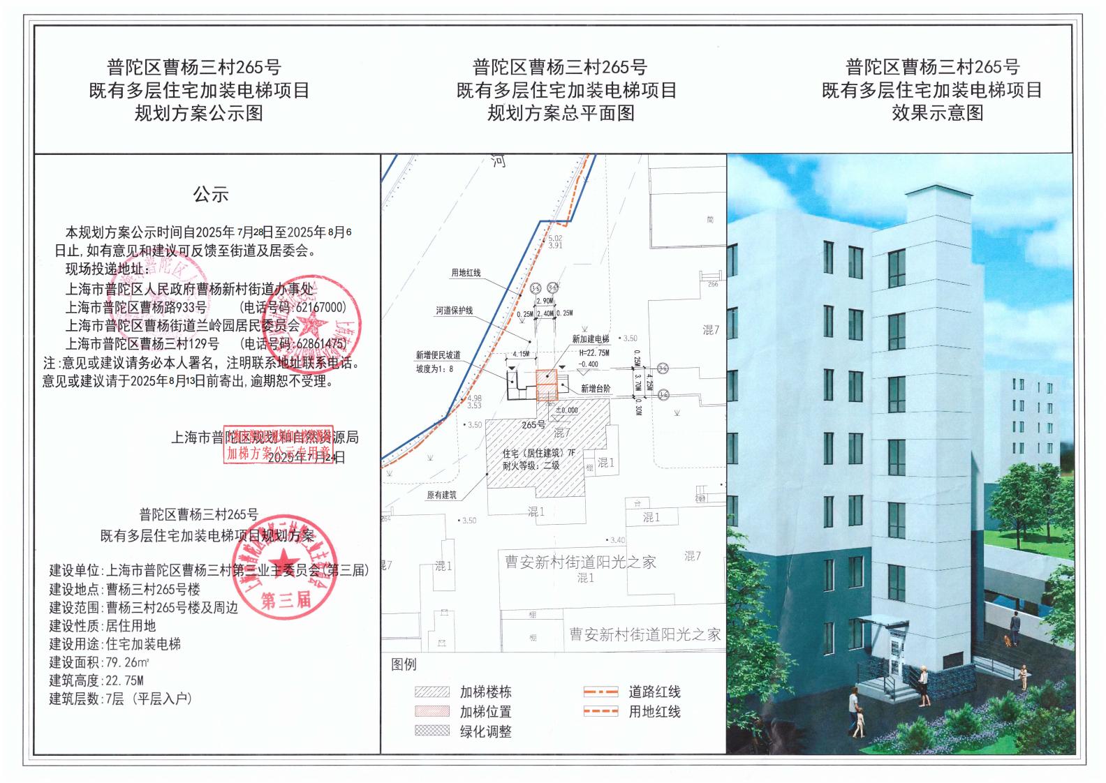 普陀区曹杨三村265号既有多层住宅加装电梯项目规划方案公示