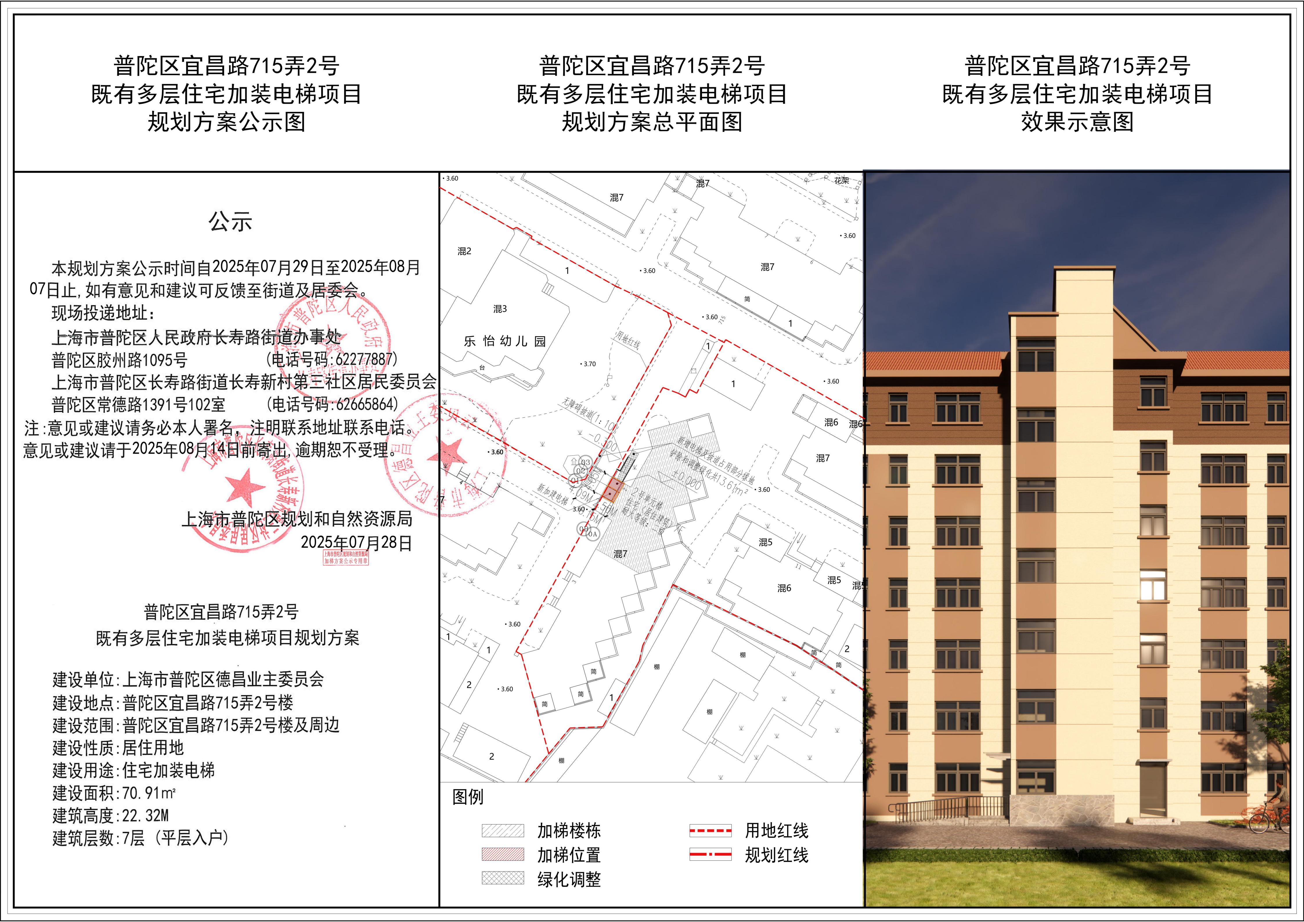 普陀区宜昌路715弄2号既有多层住宅加装电梯项目规划方案公示