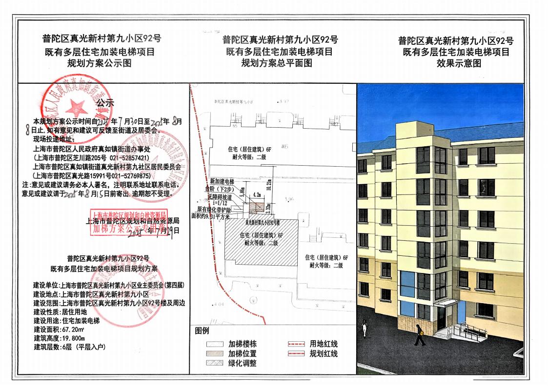 普陀区真光新村第九小区92号既有多层住宅加装电梯项目规划方案公示