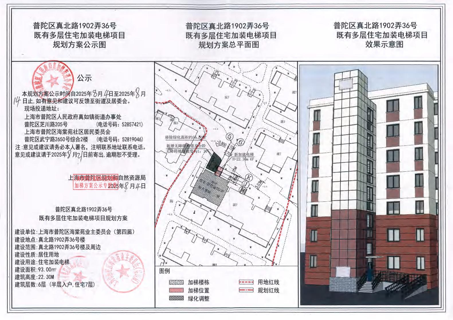 普陀区真北路1902弄36号既有多层住宅加装电梯项目规划方案公示