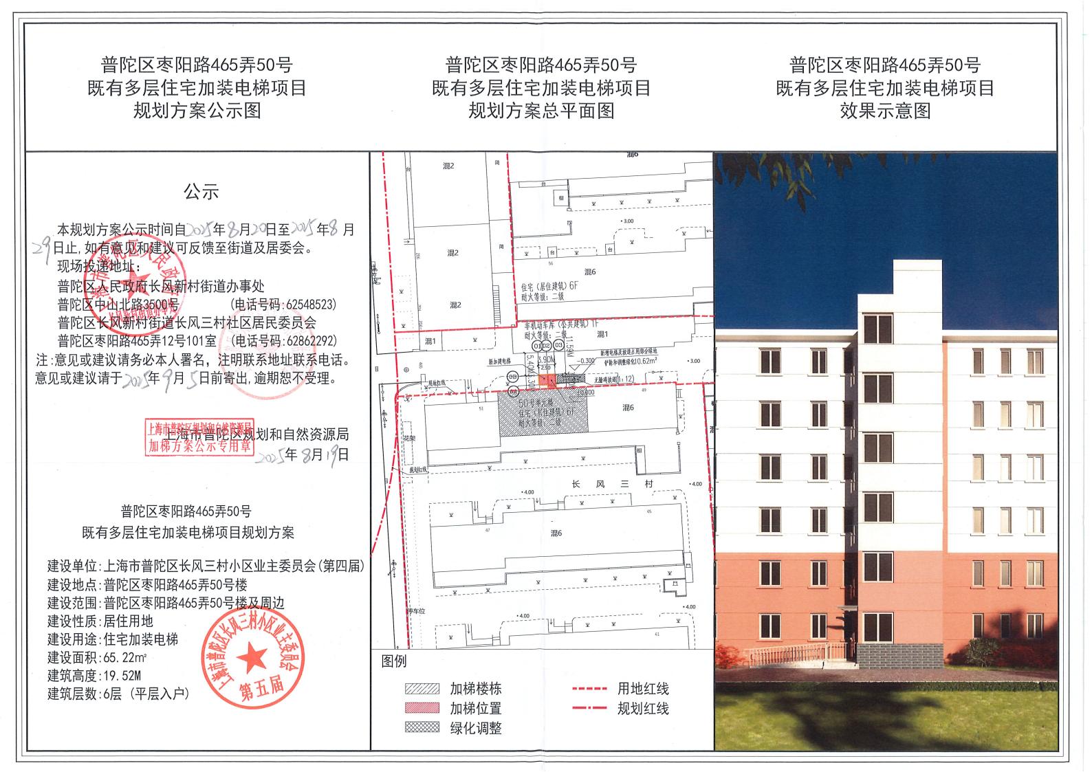 普陀区枣阳路465弄50号既有多层住宅加装电梯项目规划方案公示