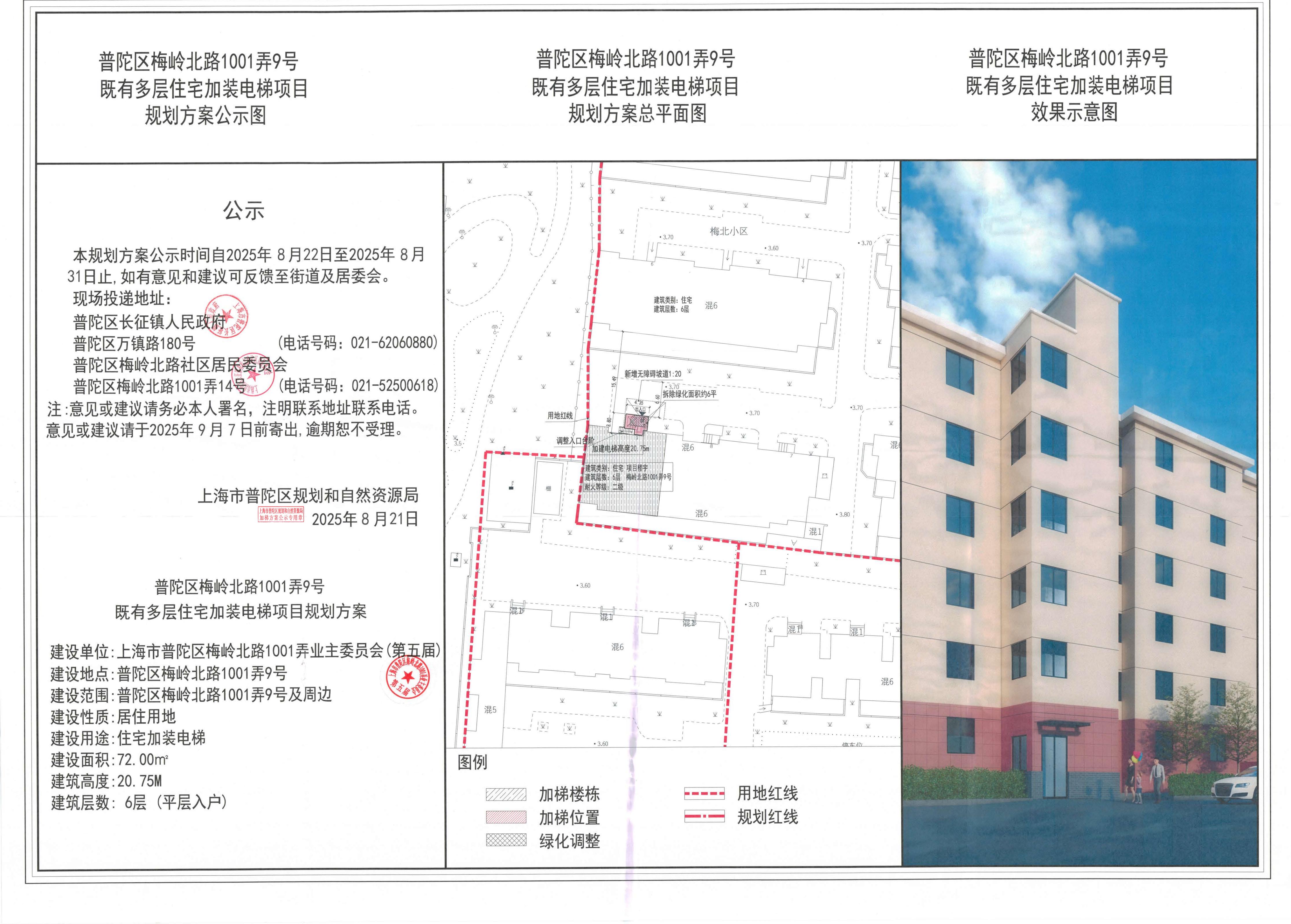 普陀区梅岭北路1001弄9号既有多层住宅加装电梯项目规划方案公示