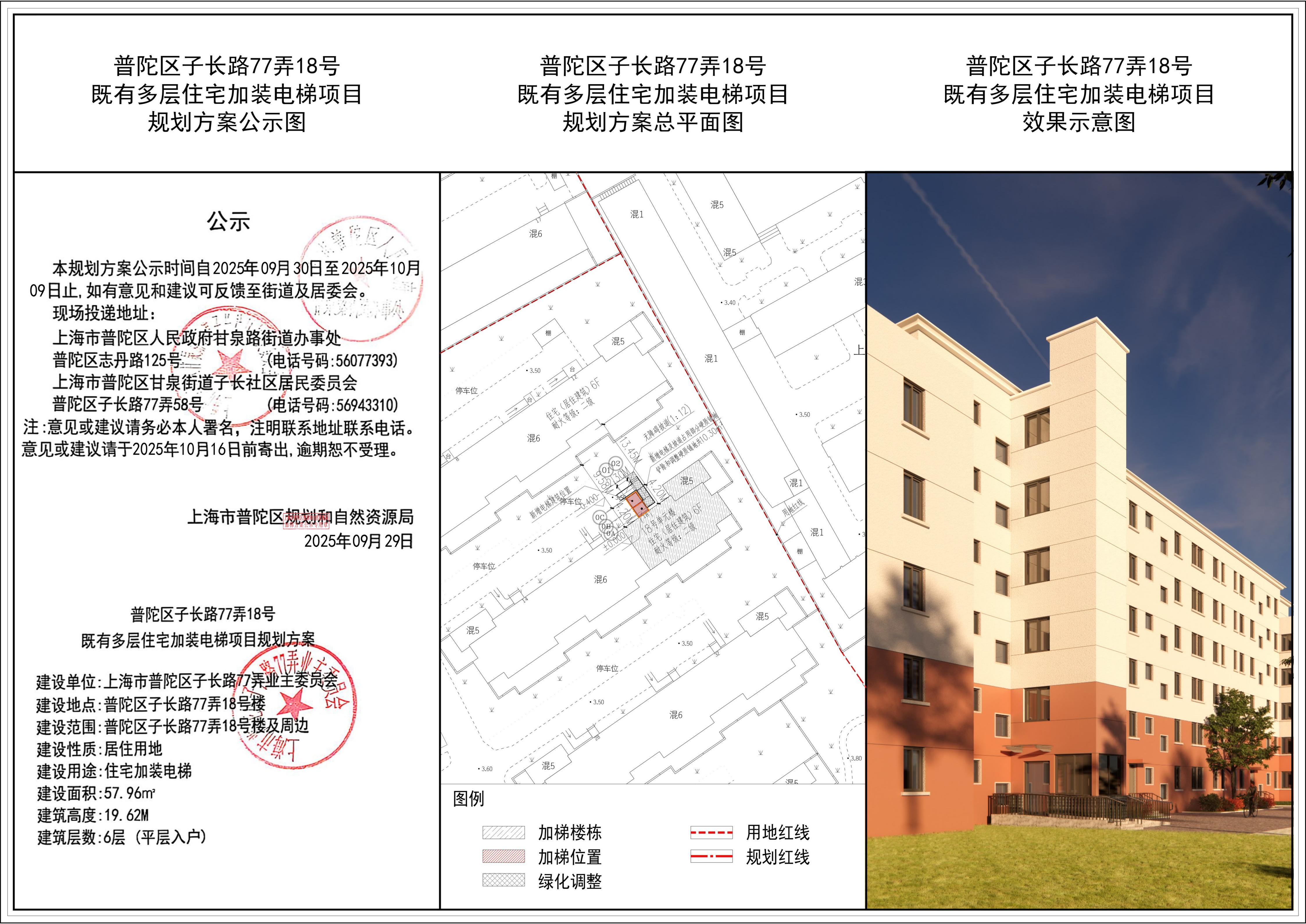 普陀区子长路77弄18号既有多层住宅加装电梯项目规划方案公示