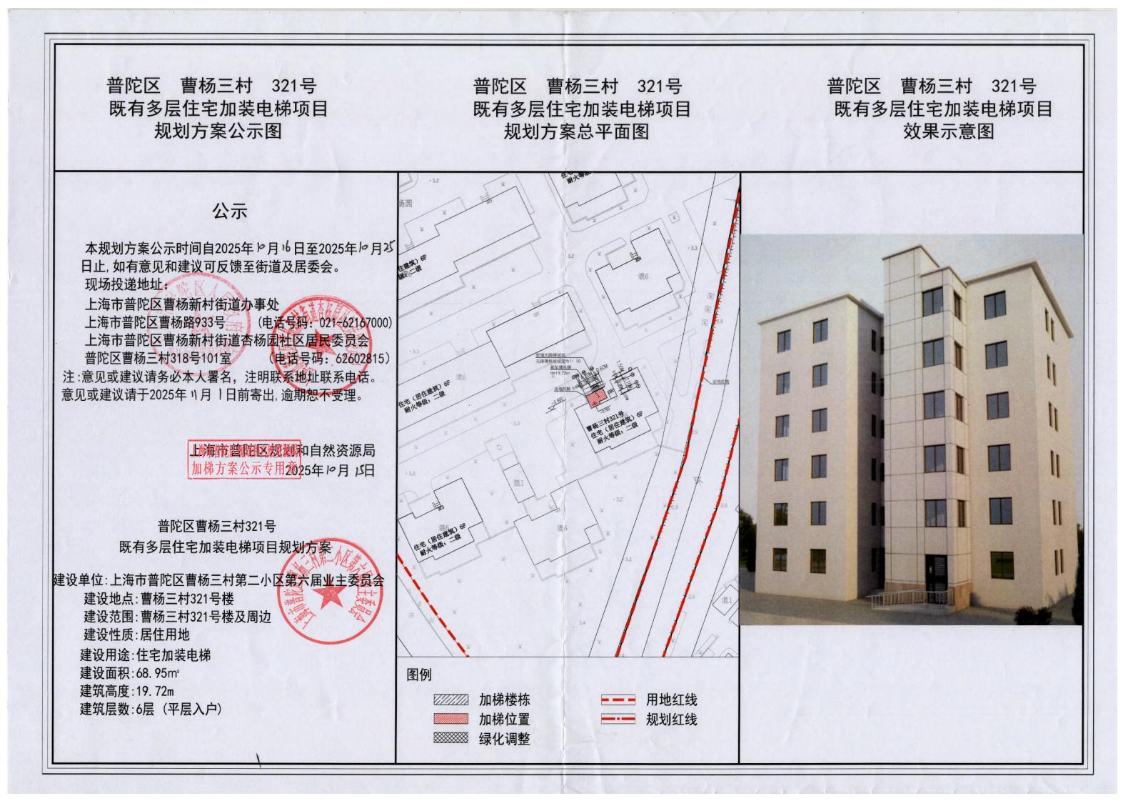 普陀区曹杨三村321号既有多层住宅加装电梯项目规划方案公示
