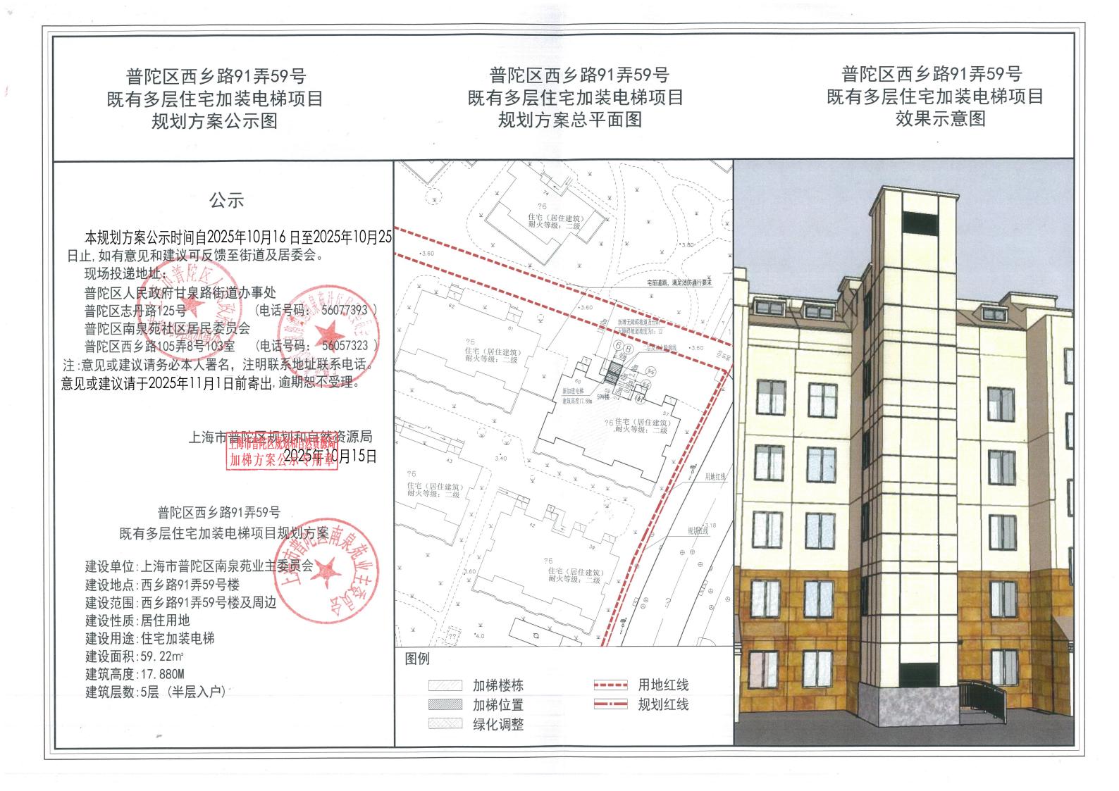 普陀区西乡路91弄59号既有多层住宅加装电梯项目规划方案公示