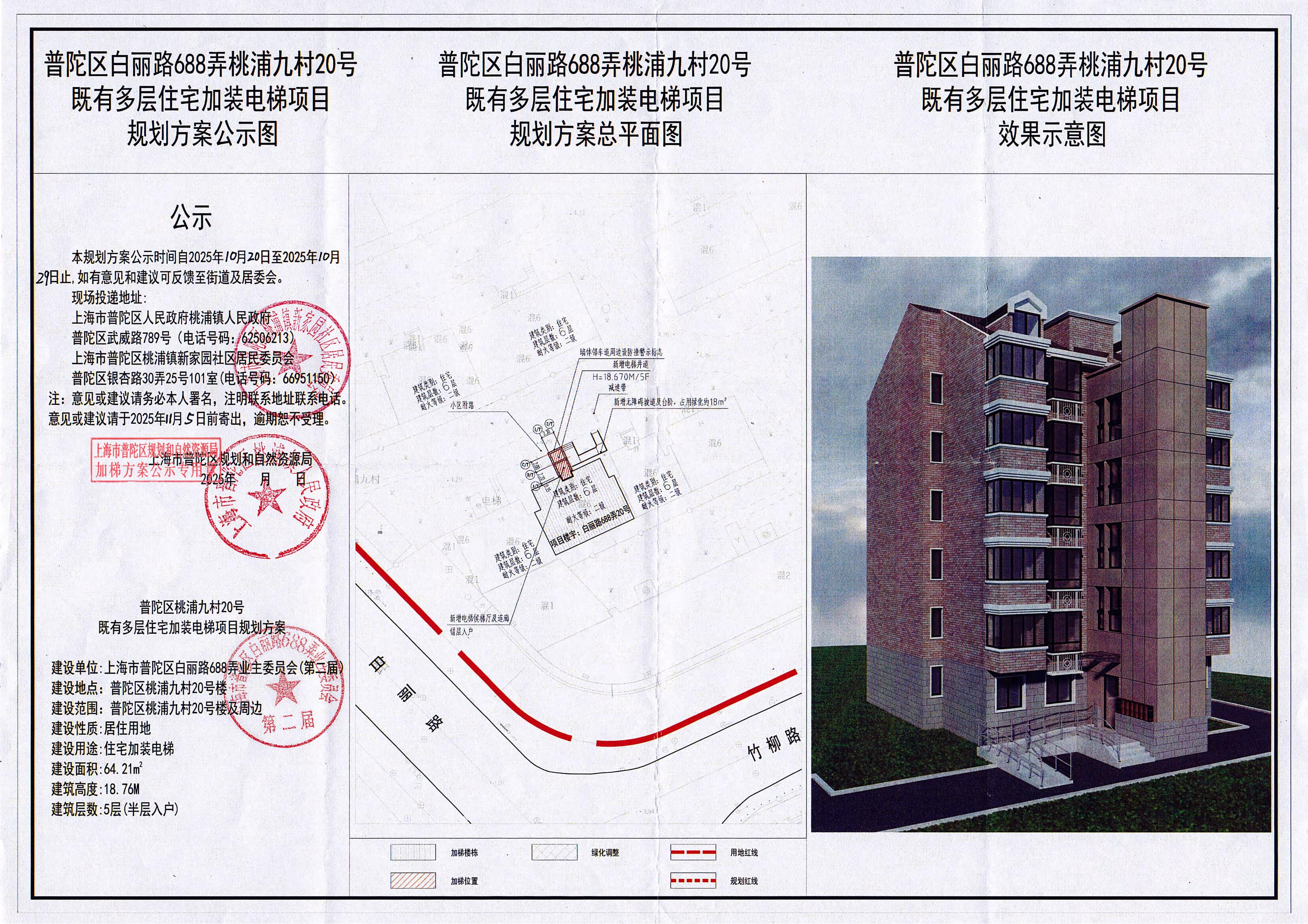 普陀区白丽路688弄桃浦九村20号既有多层住宅加装电梯项目规划方案公示