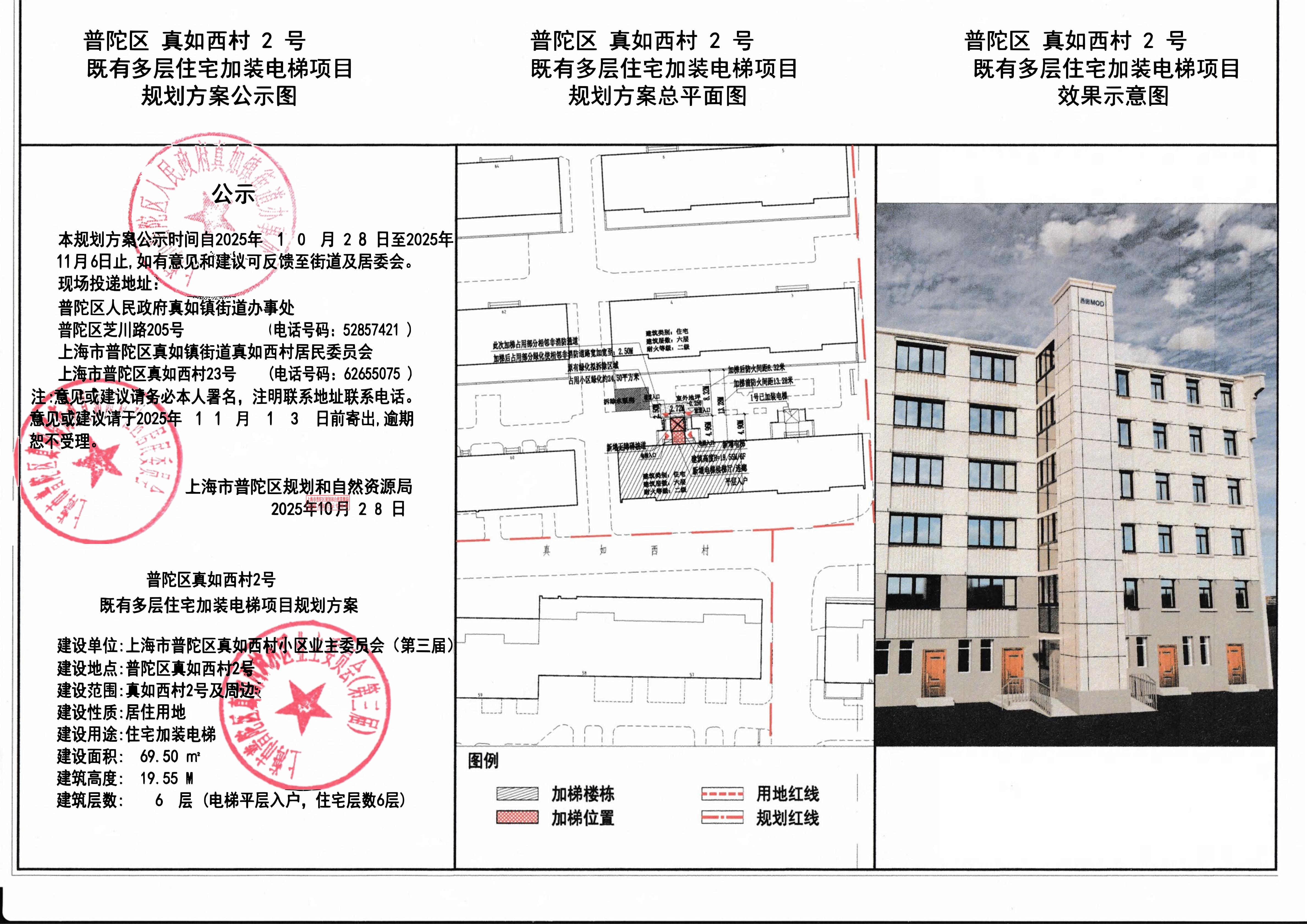 普陀区真如西村2号既有多层住宅加装电梯项目规划方案公示