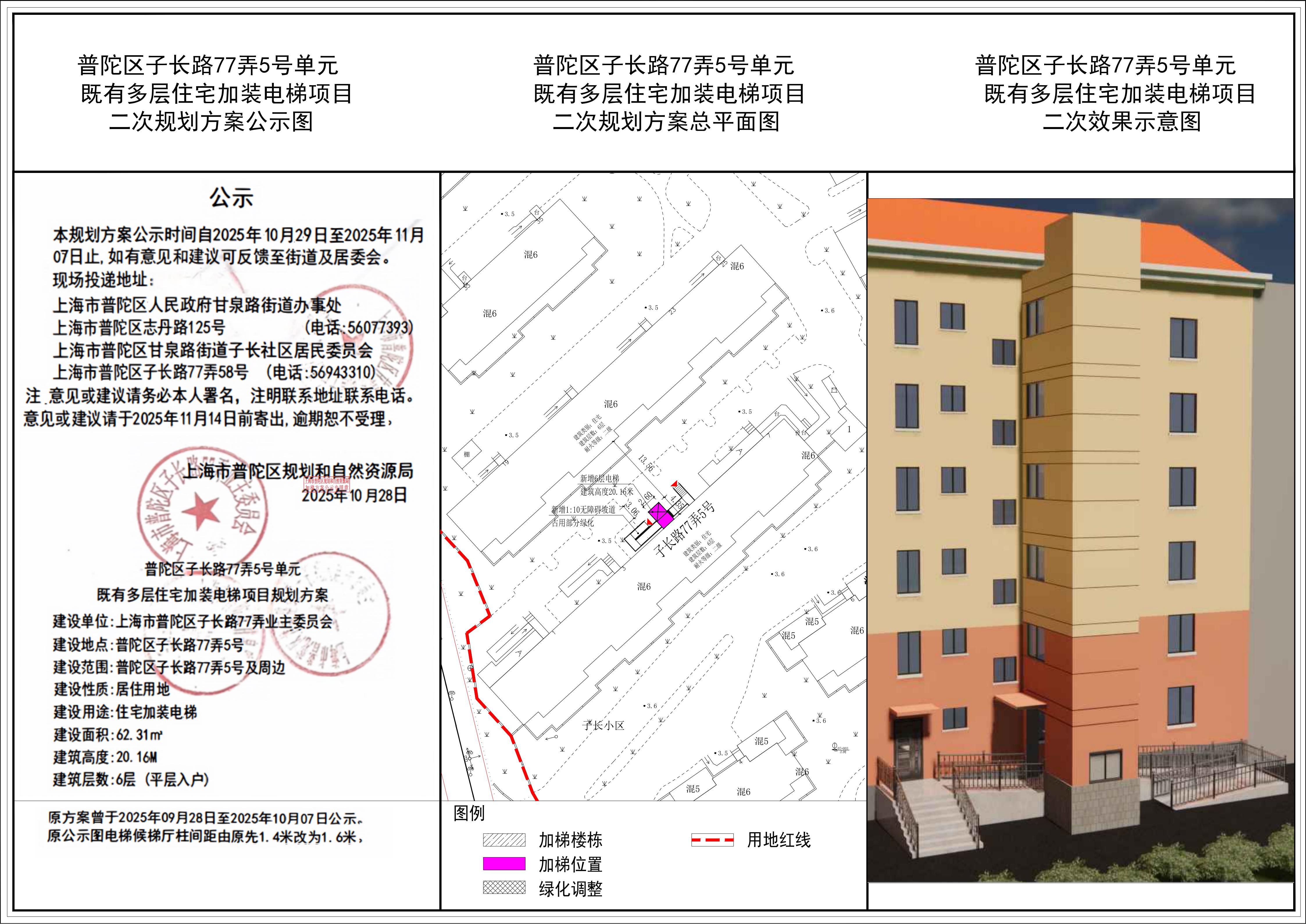 普陀区子长路77弄5号单元既有多层住宅加装电梯项目二次规划方案公示