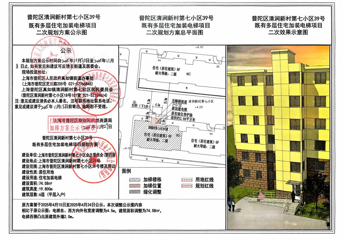普陀区清涧新村第七小区39号既有多层住宅加装电梯项目二次规划方案公示