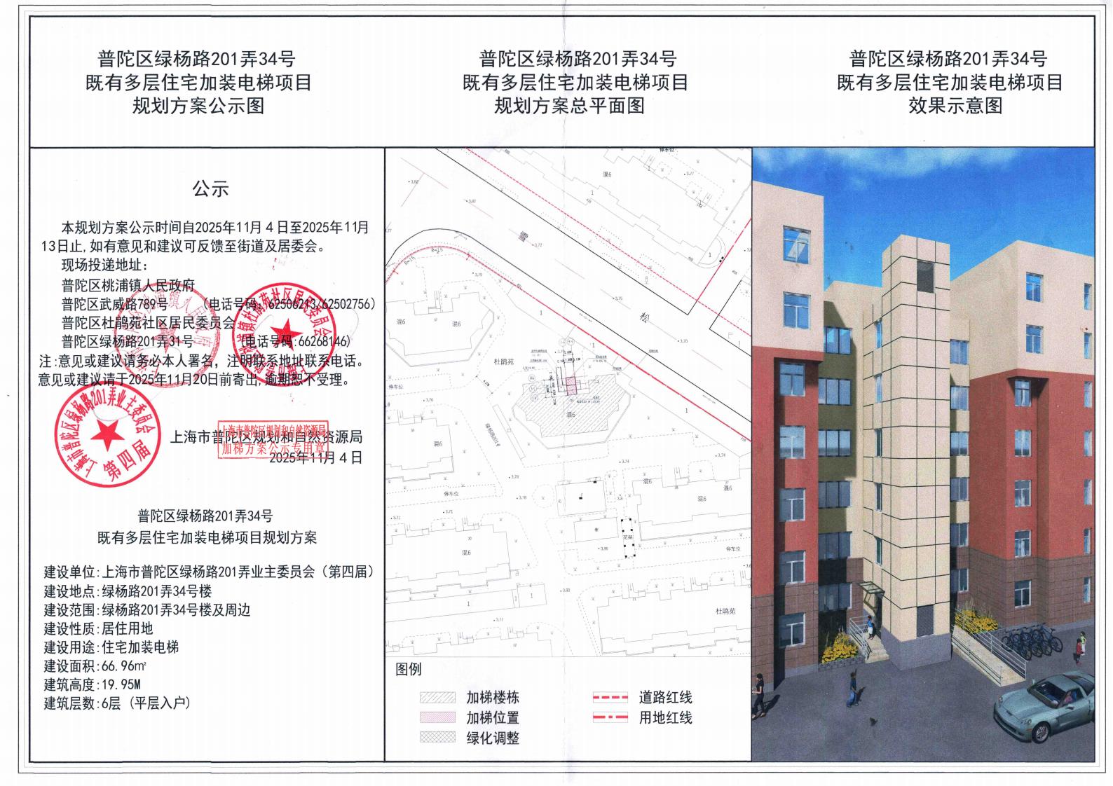 普陀区绿杨路201弄34号既有多层住宅加装电梯项目规划方案公示