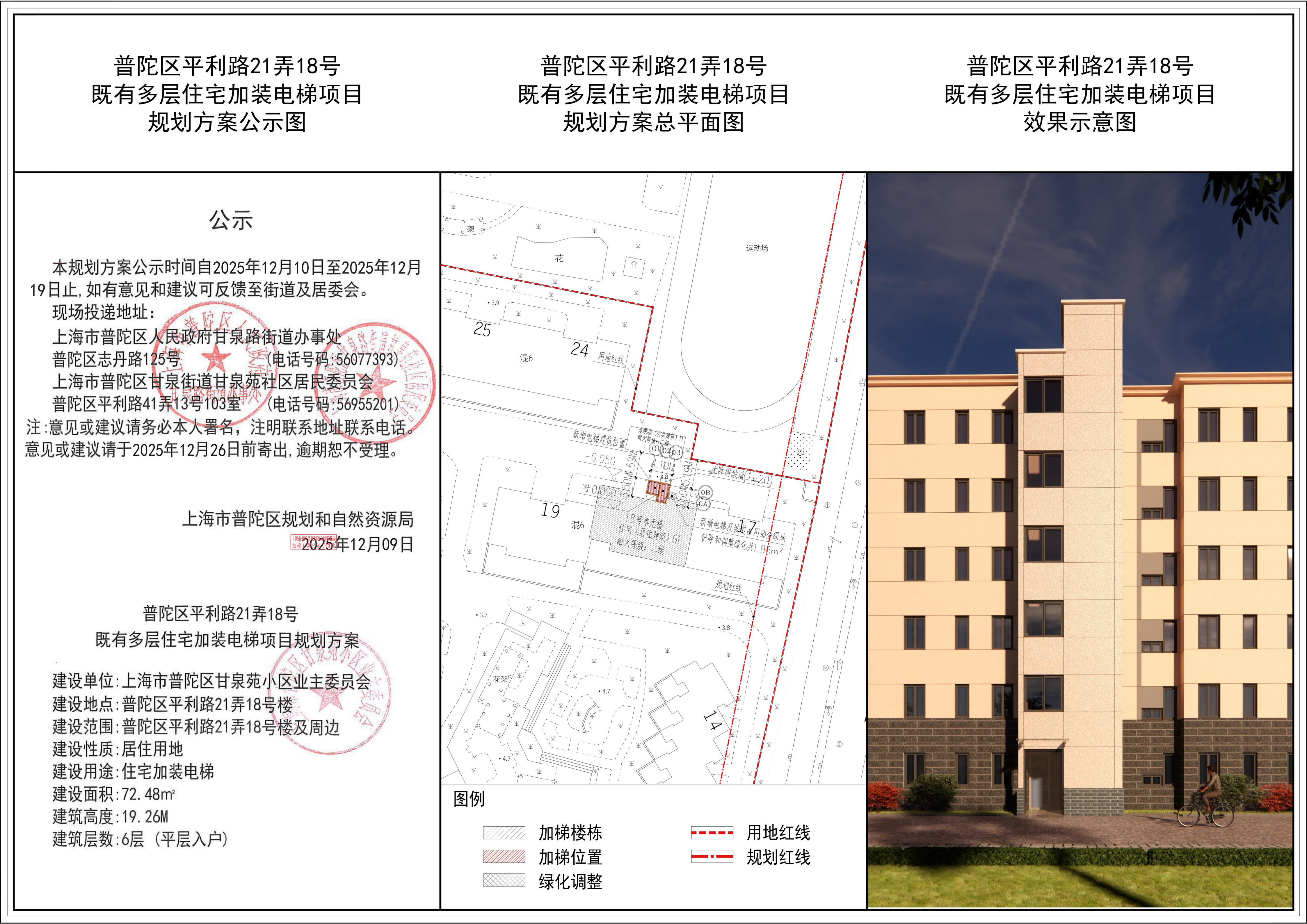 普陀区平利路21弄18号既有多层住宅加装电梯项目规划方案公示