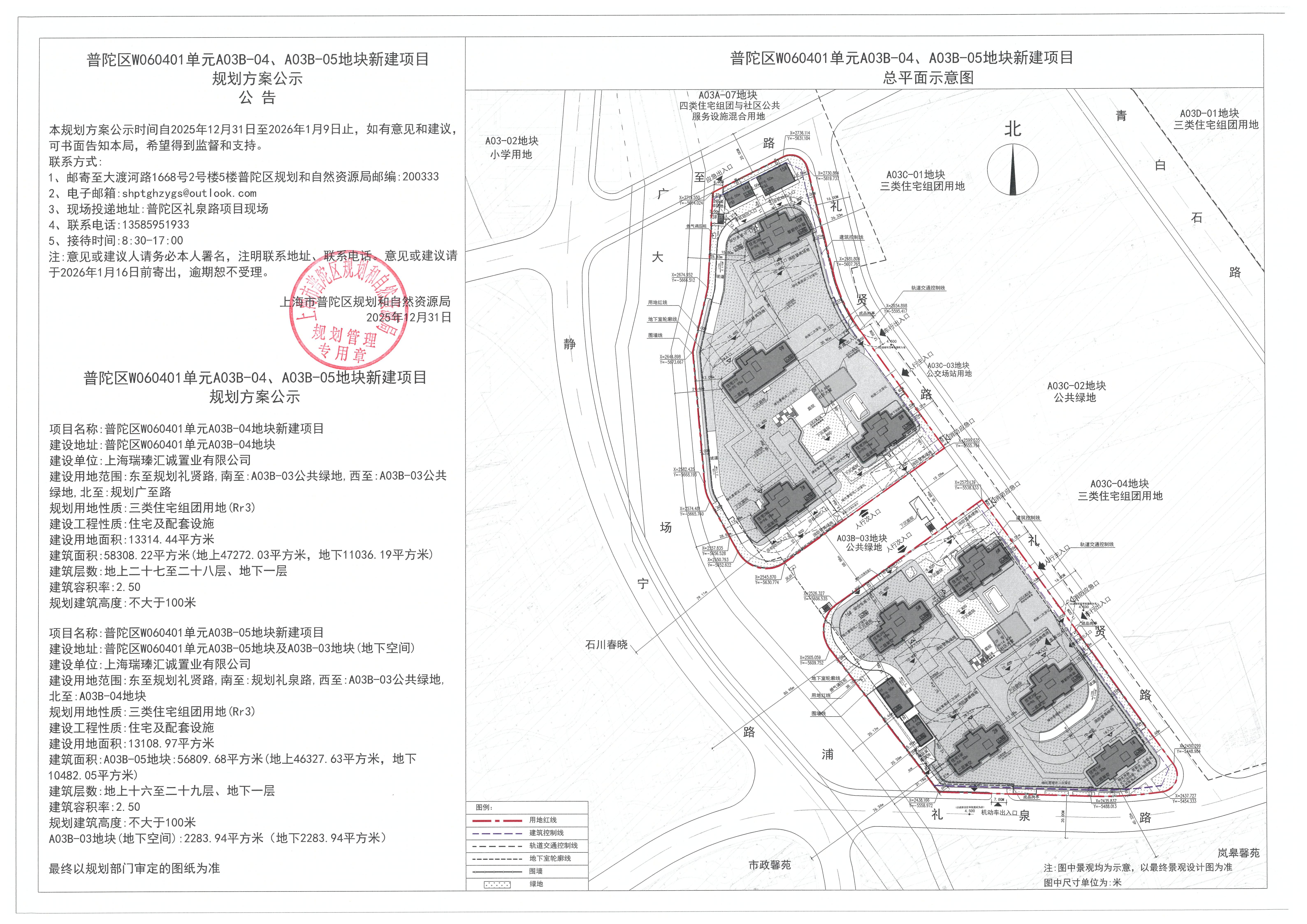 普陀区W060401单元A03B-04、A03B-05地块新建项目规划方案公示