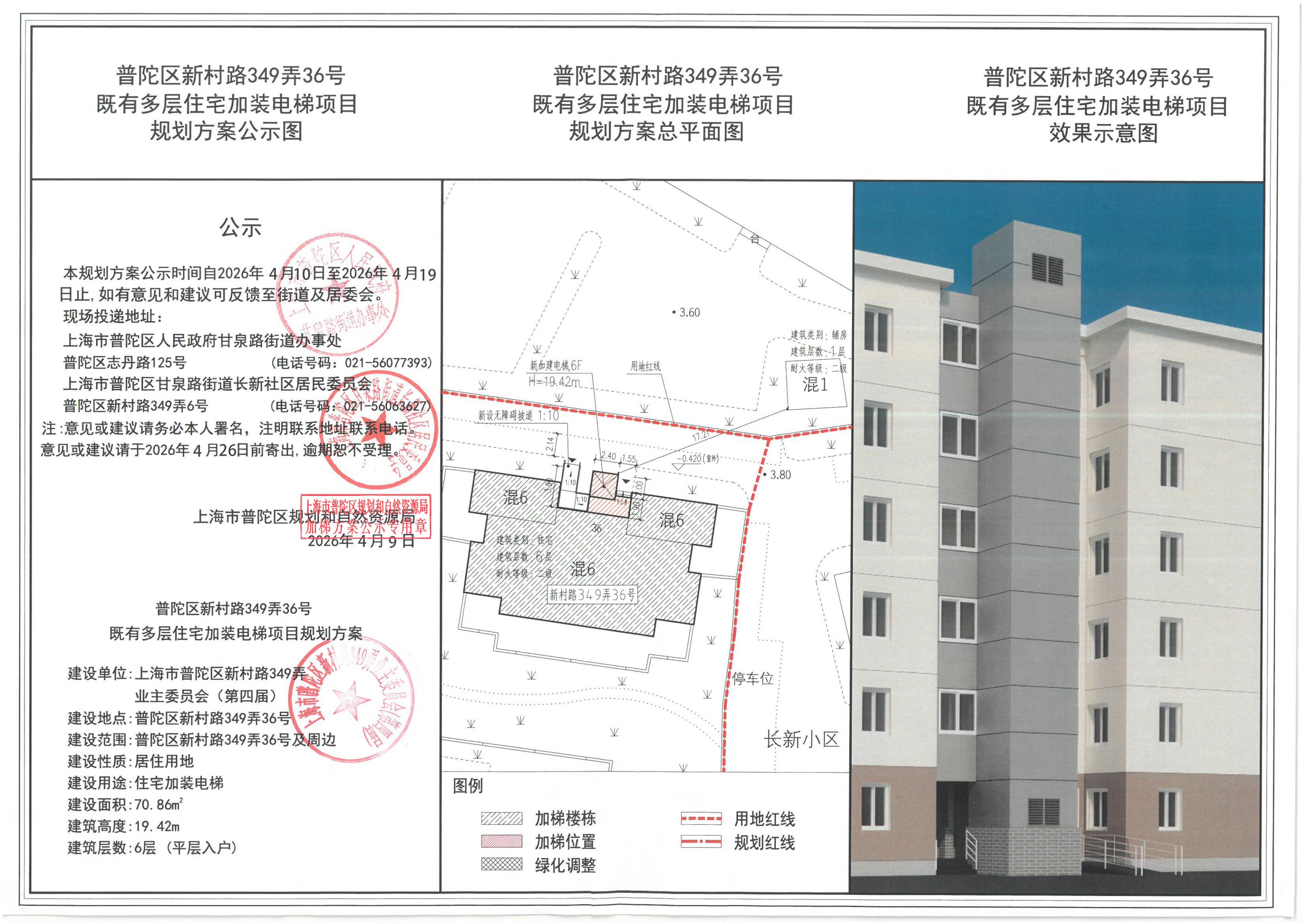 普陀区新村路349弄36号既有多层住宅加装电梯项目规划方案公示