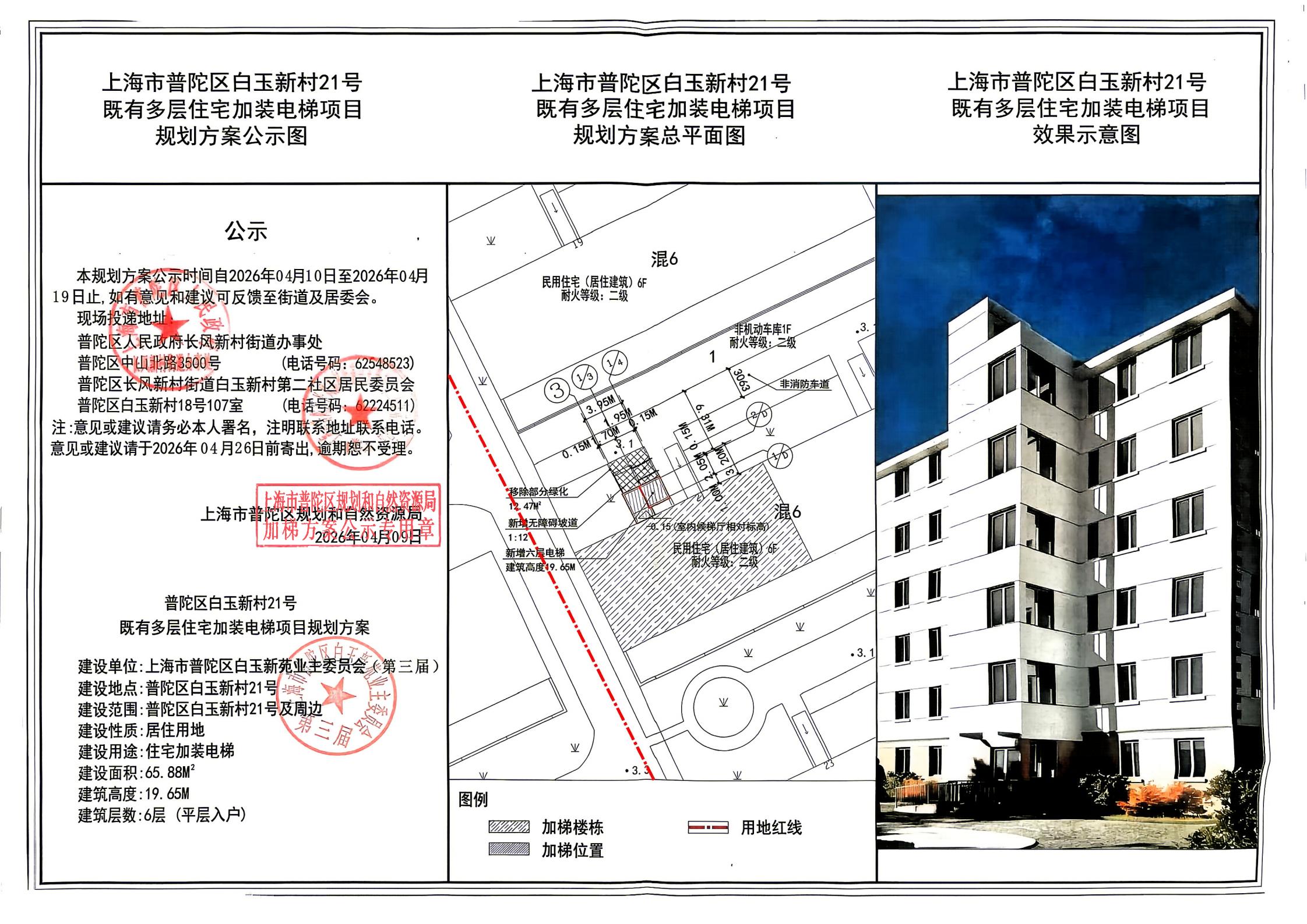 上海市普陀区白玉新村21号既有多层住宅加装电梯项目规划方案公示