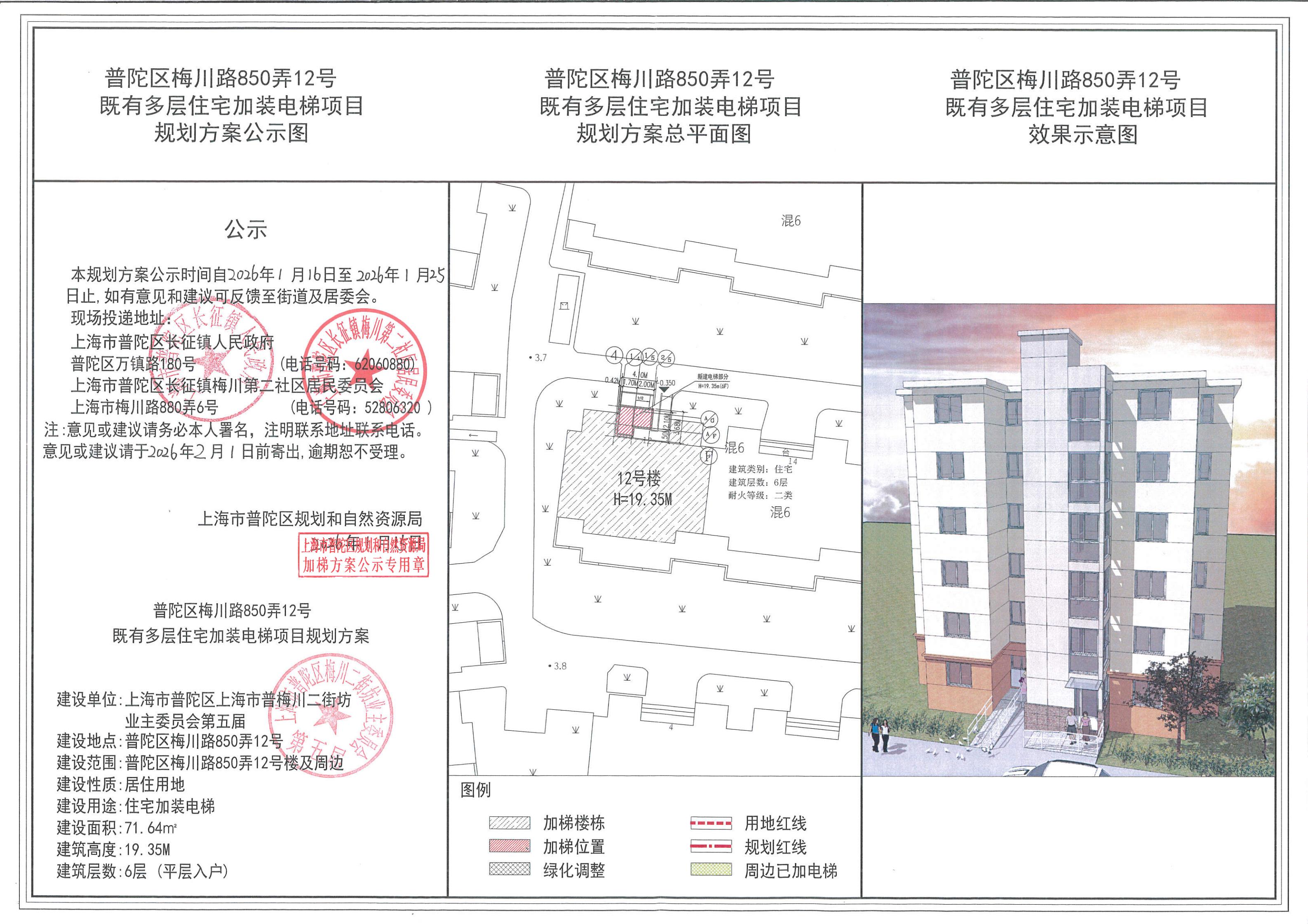 普陀区梅川路850弄12号既有多层住宅加装电梯项目规划方案公示