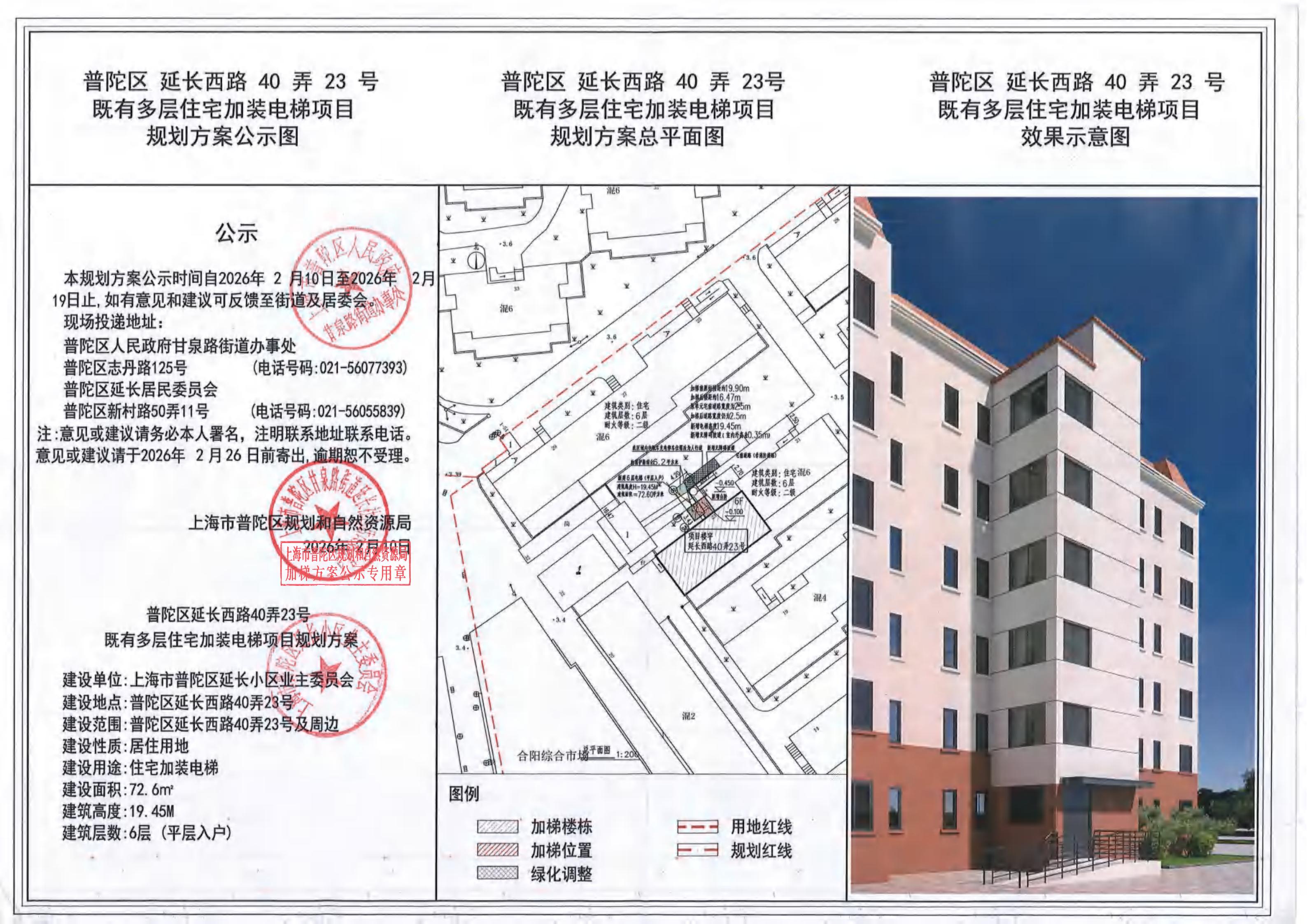普陀区延长西路40弄23号既有多层住宅加装电梯项目规划方案公示