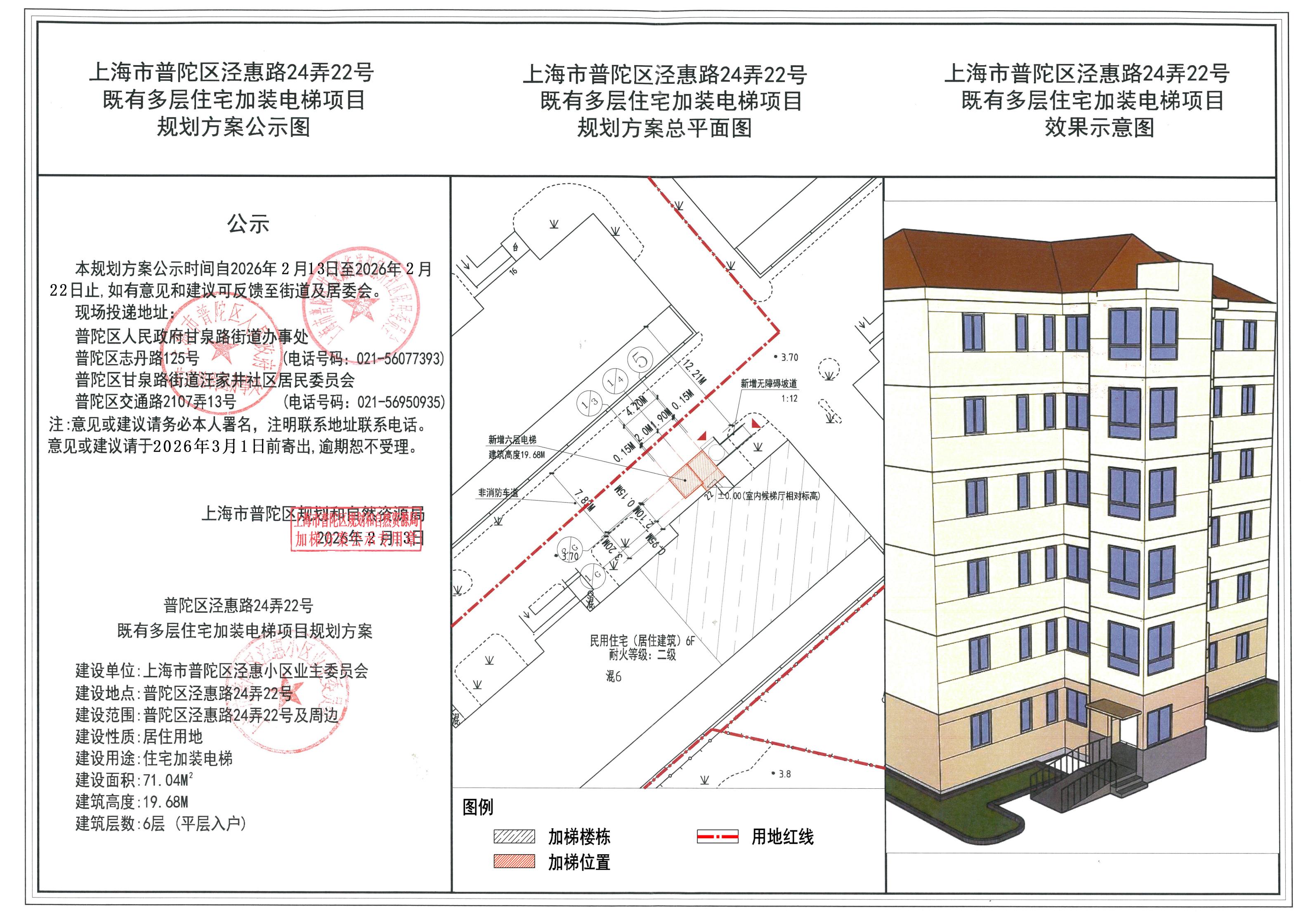 上海市普陀区泾惠路24弄22号既有多层住宅加装电梯项目规划方案公示