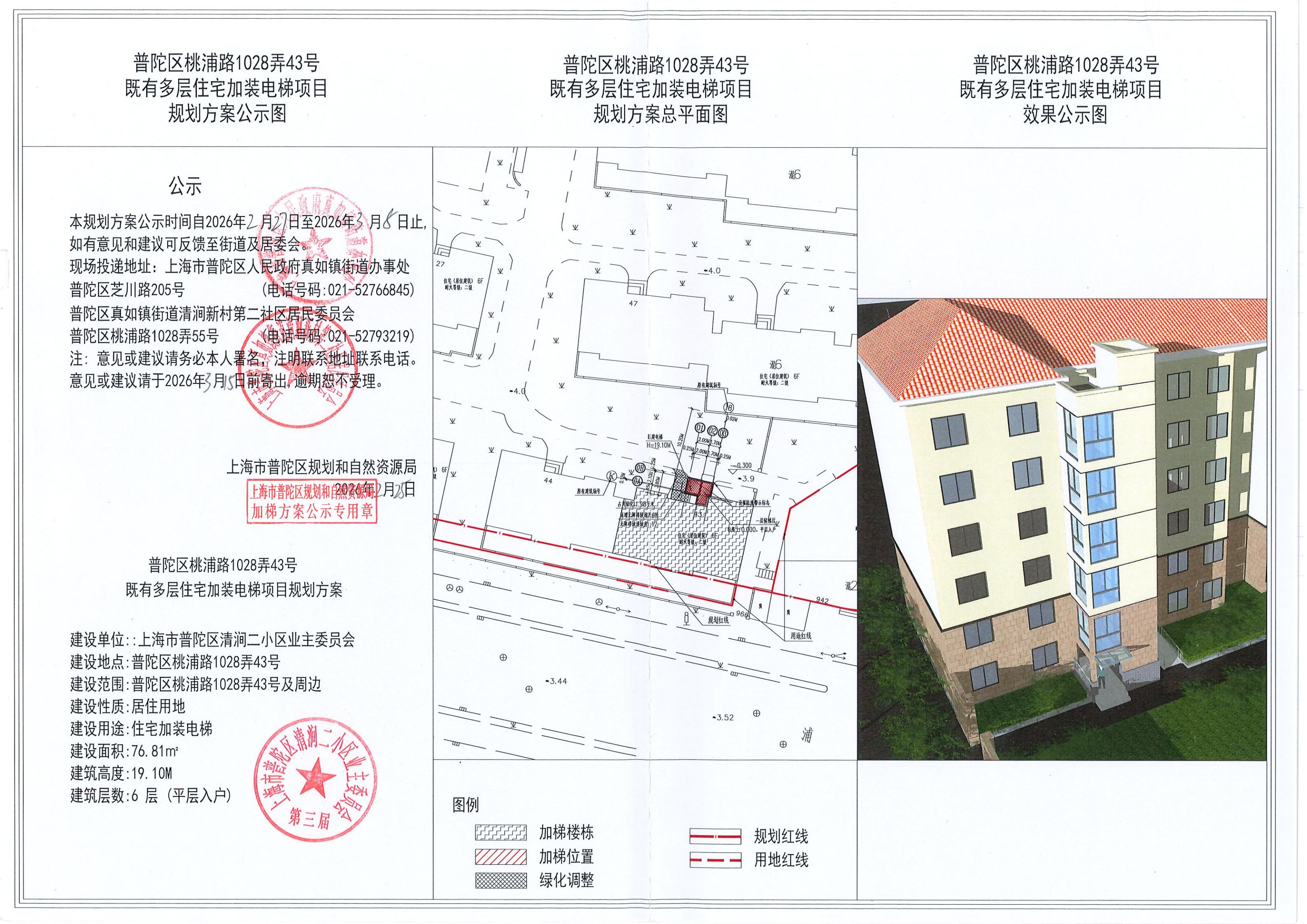 普陀区桃浦路1028弄43号既有多层住宅加装电梯项目规划方案公示