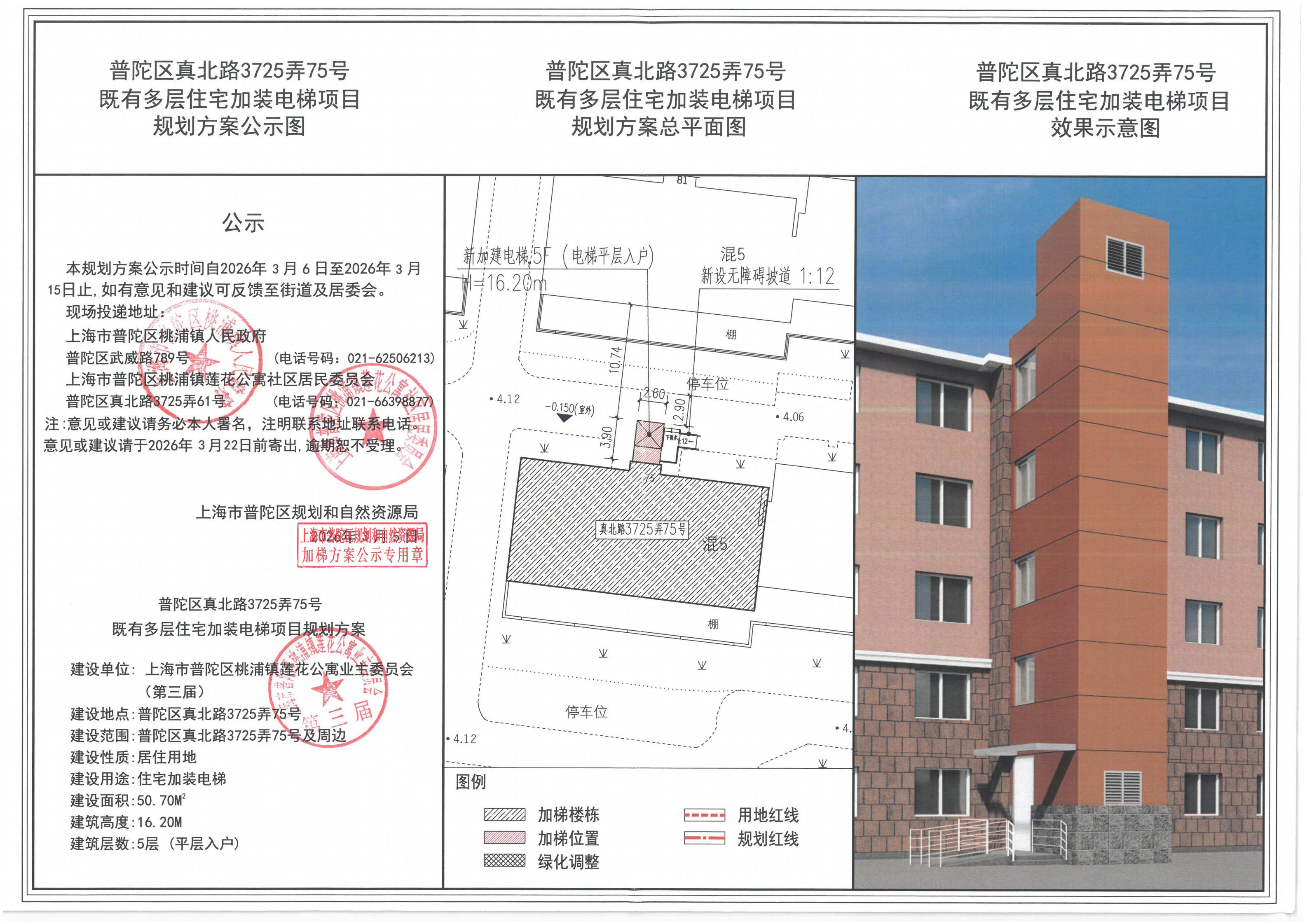 普陀区真北路3725弄75号既有多层住宅加装电梯项目规划方案公示