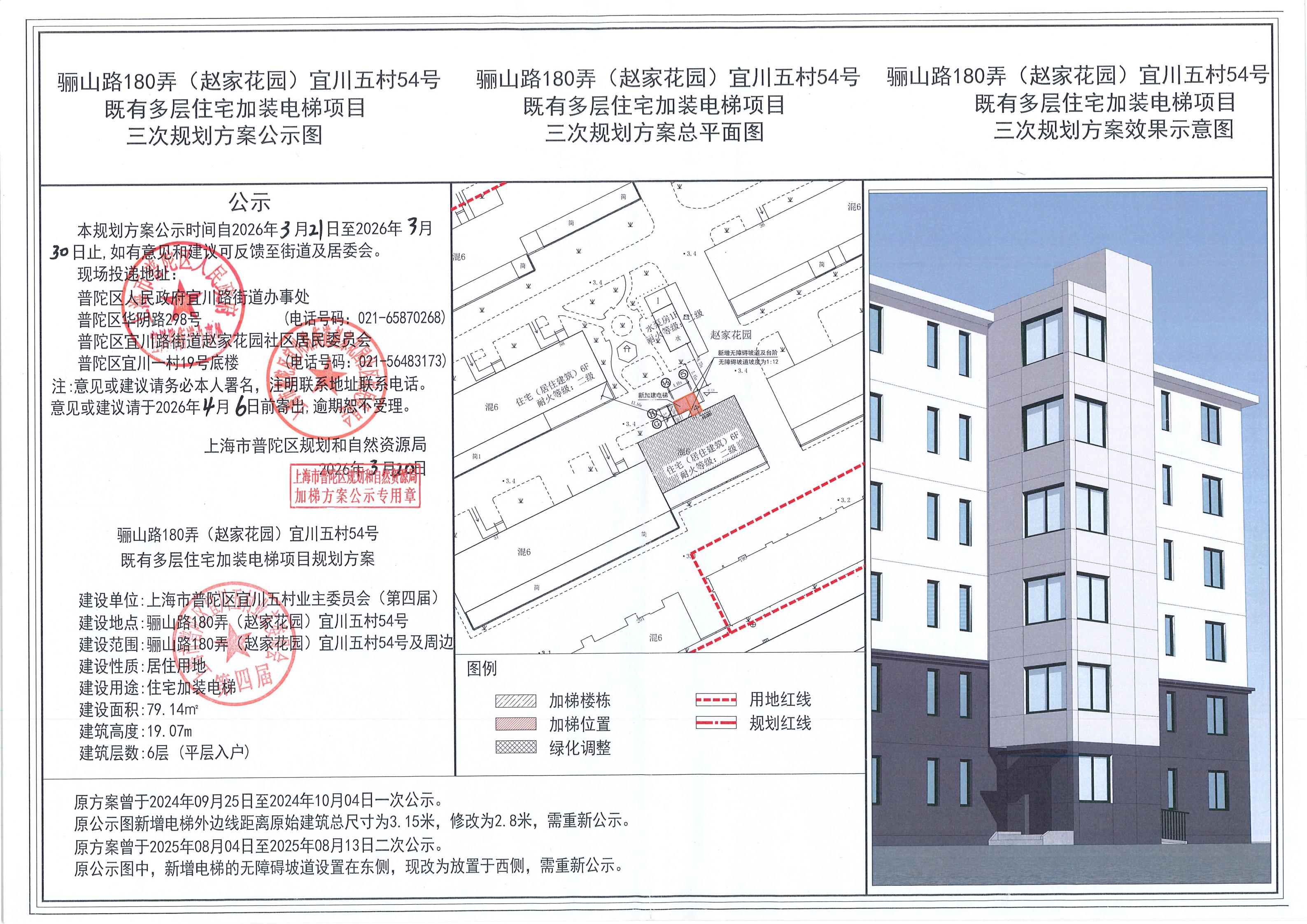 骊山路180弄(赵家花园)宜川五村54号既有多层住宅加装电梯项目三次规划方案公示