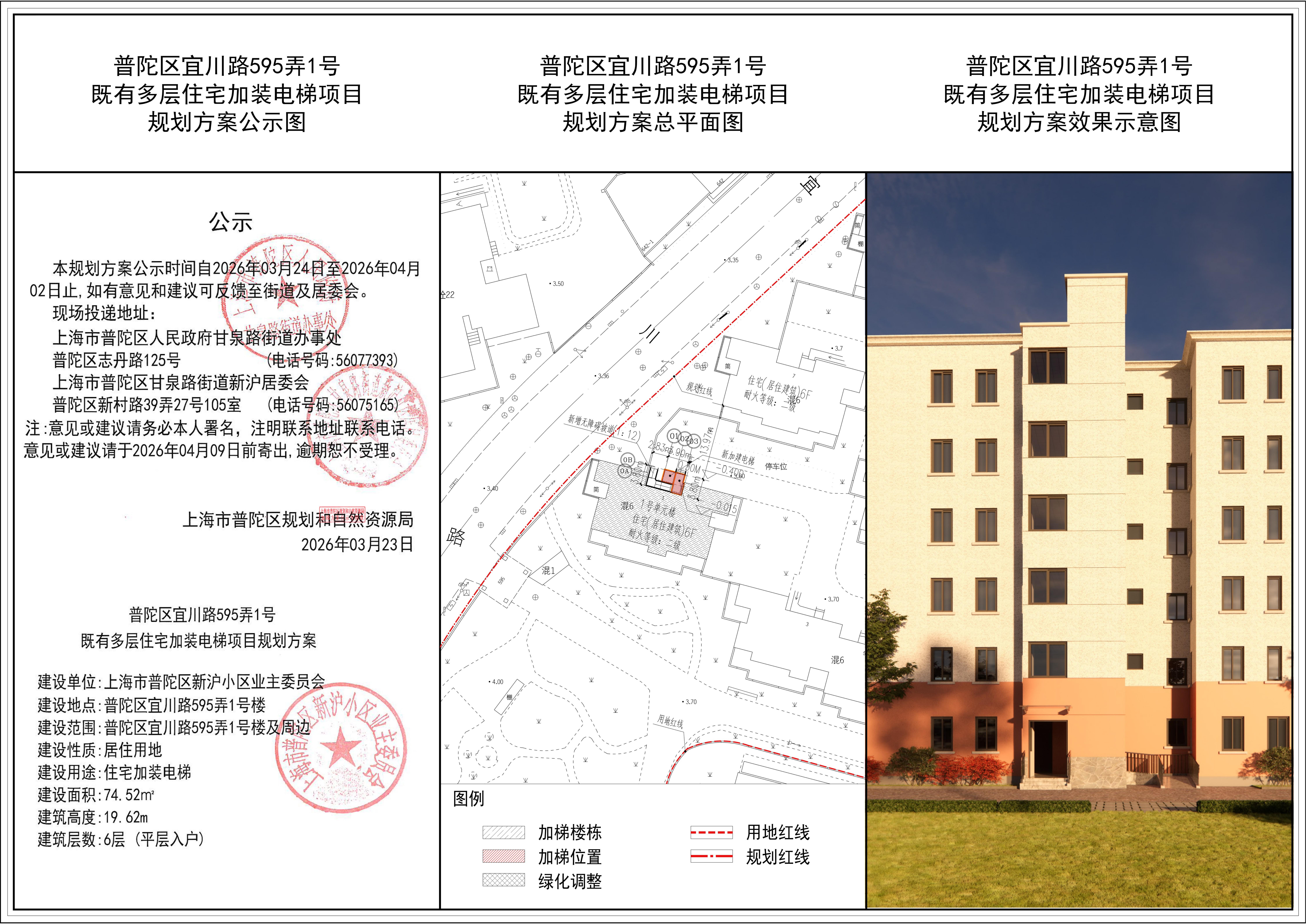普陀区宜川路595弄1号既有多层住宅加装电梯项目规划方案公示