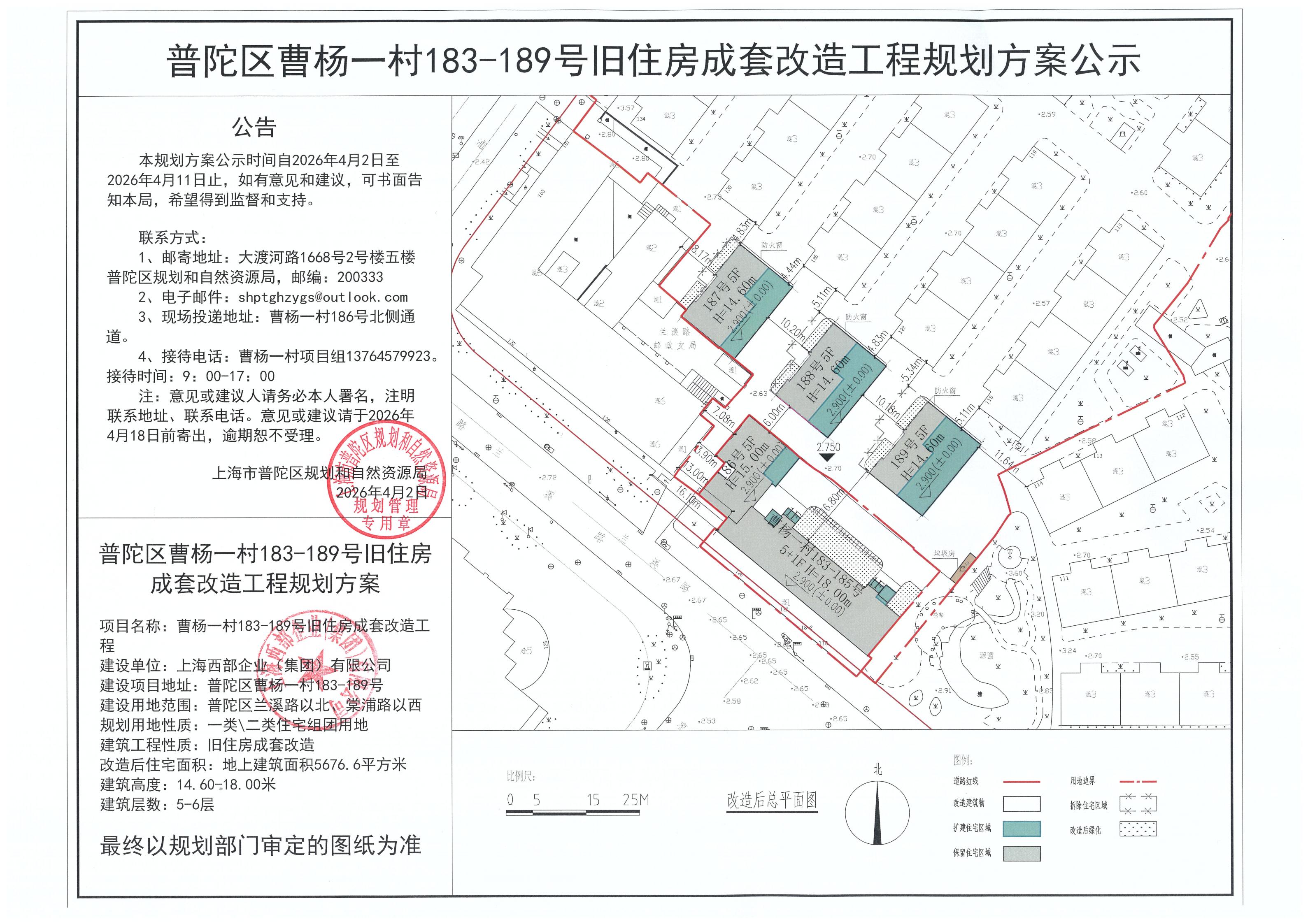 普陀区曹杨一村183-189号旧住房成套改造工程规划方案公示