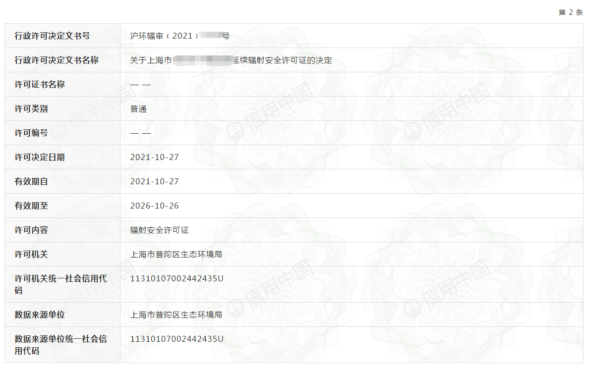 目前辐射安全许可证持证单位信息由我局提交给相关单位后统一在信用中国网站(https://www.creditchina.gov.cn/ )公示。需要查询辐射安全许可证信息的单位和个人,可在信用中国网站输入需查询公司的名称进行搜索,即可查询到该公司办理辐射安全许可证的情况。