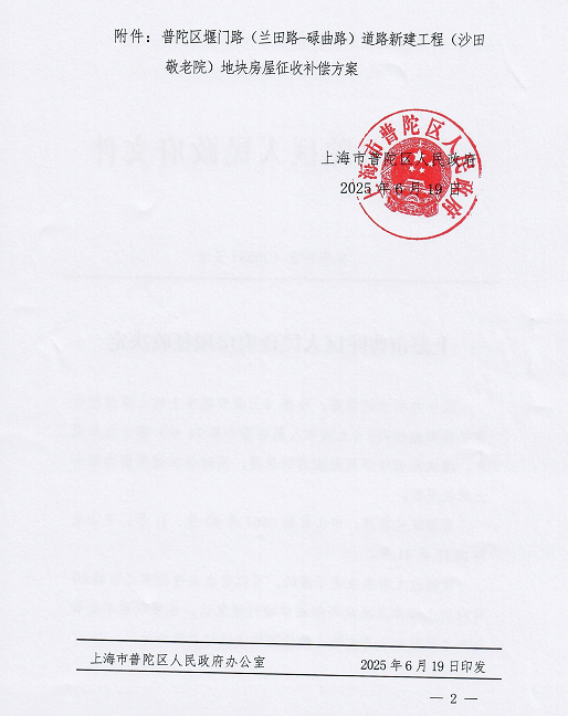 普陀区堰门路(兰田路-碌曲路)道路新建工程(沙田敬老院)地块房屋征收补偿方案.pdf