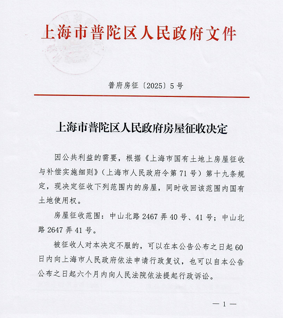 普陀区堰门路(兰田路-碌曲路)道路新建工程(沙田敬老院)地块征收决定
