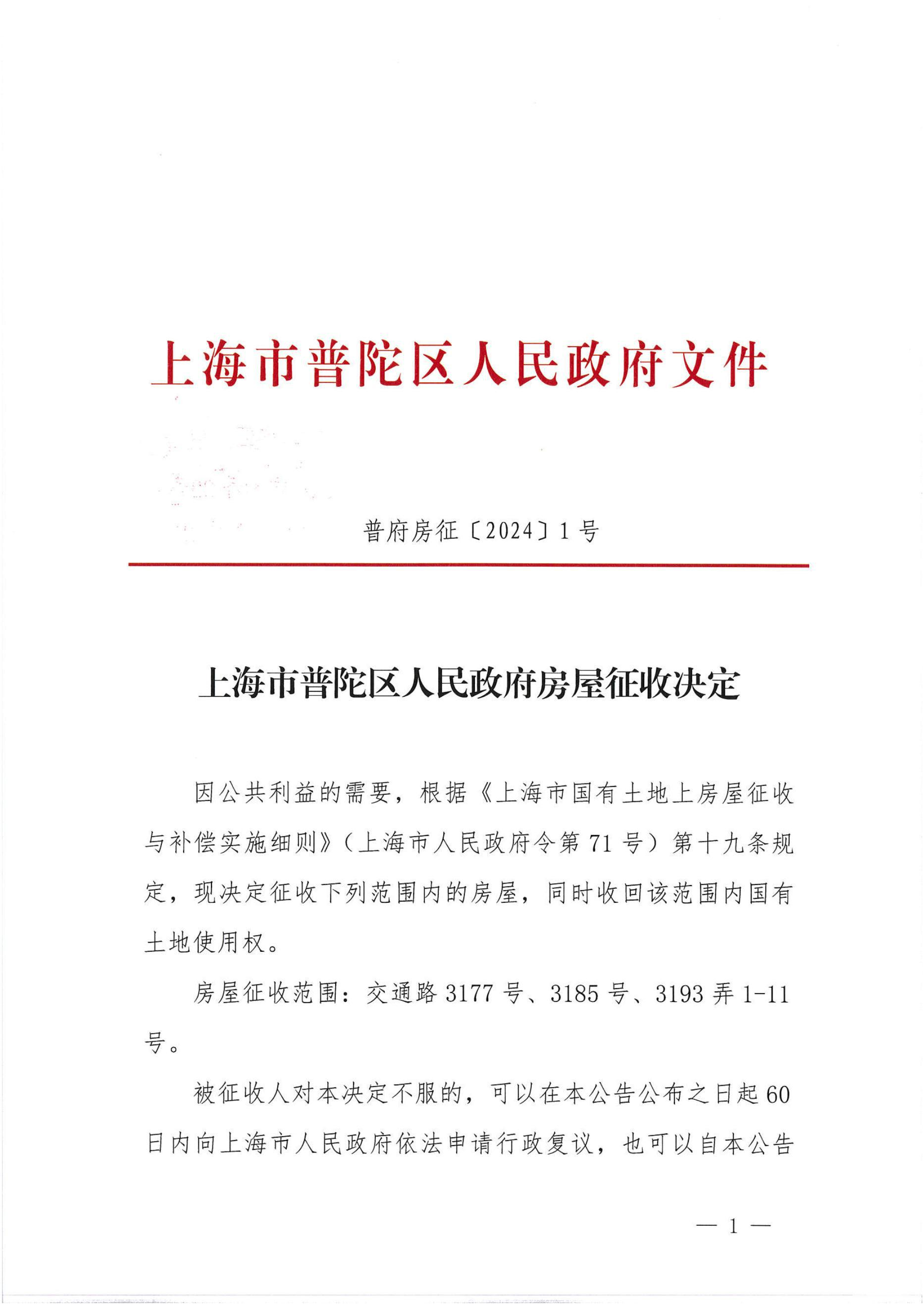 上海市普陀区人民政府房屋征收决定(轨道交通20号线广泉路站地块)
