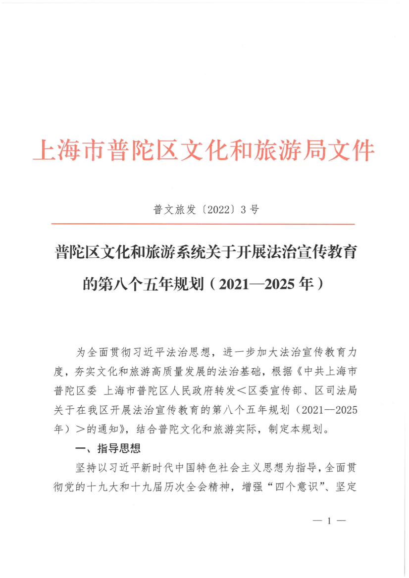 普陀区文化和旅游系统关于开展法治宣传教育的第八个五年规划(2021—2025年)