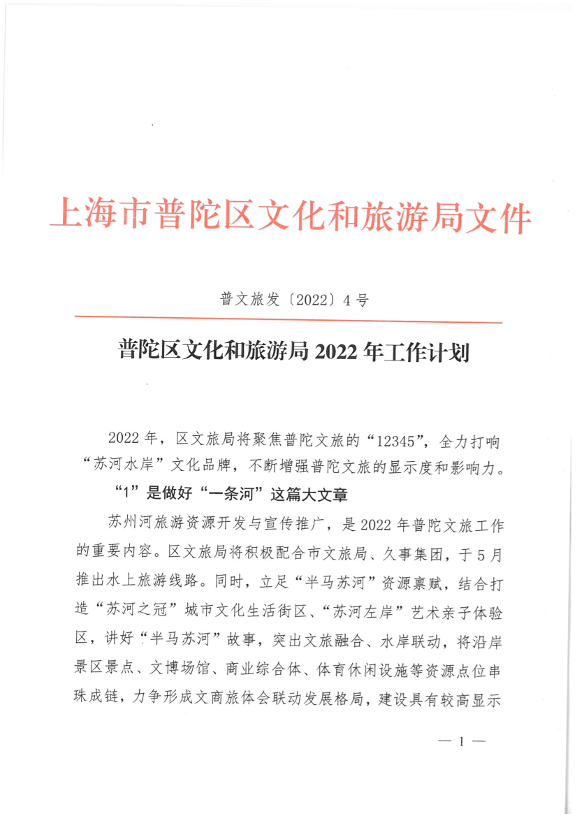 2022年,区文旅局将聚焦普陀文旅的“12345”,全力打响“苏河水岸”文化品牌,不断增强普陀文旅的显示度和影响力。