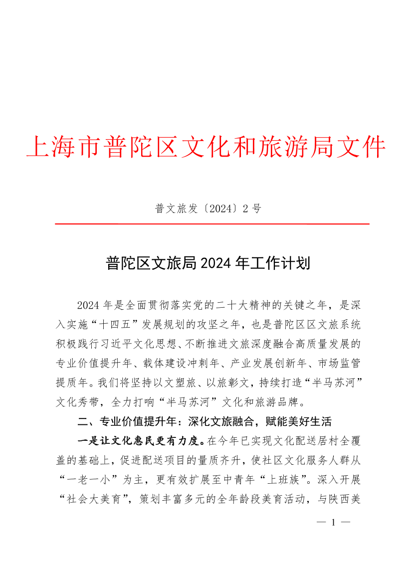 普陀区文旅局2024年工作计划