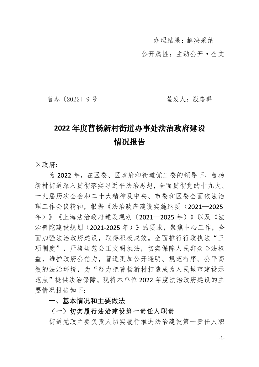 2022年度曹杨新村街道办事处法治政府建设情况报告