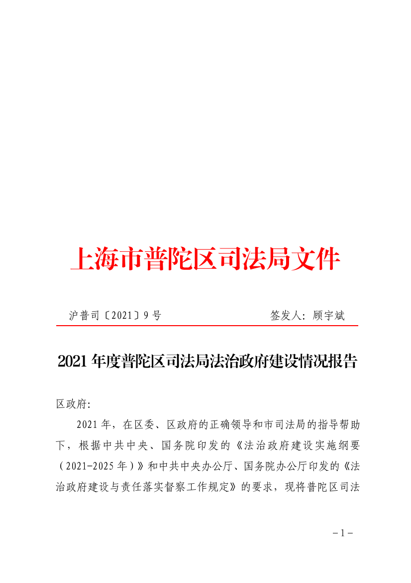 2021年度普陀区司法局法治政府建设情况报告