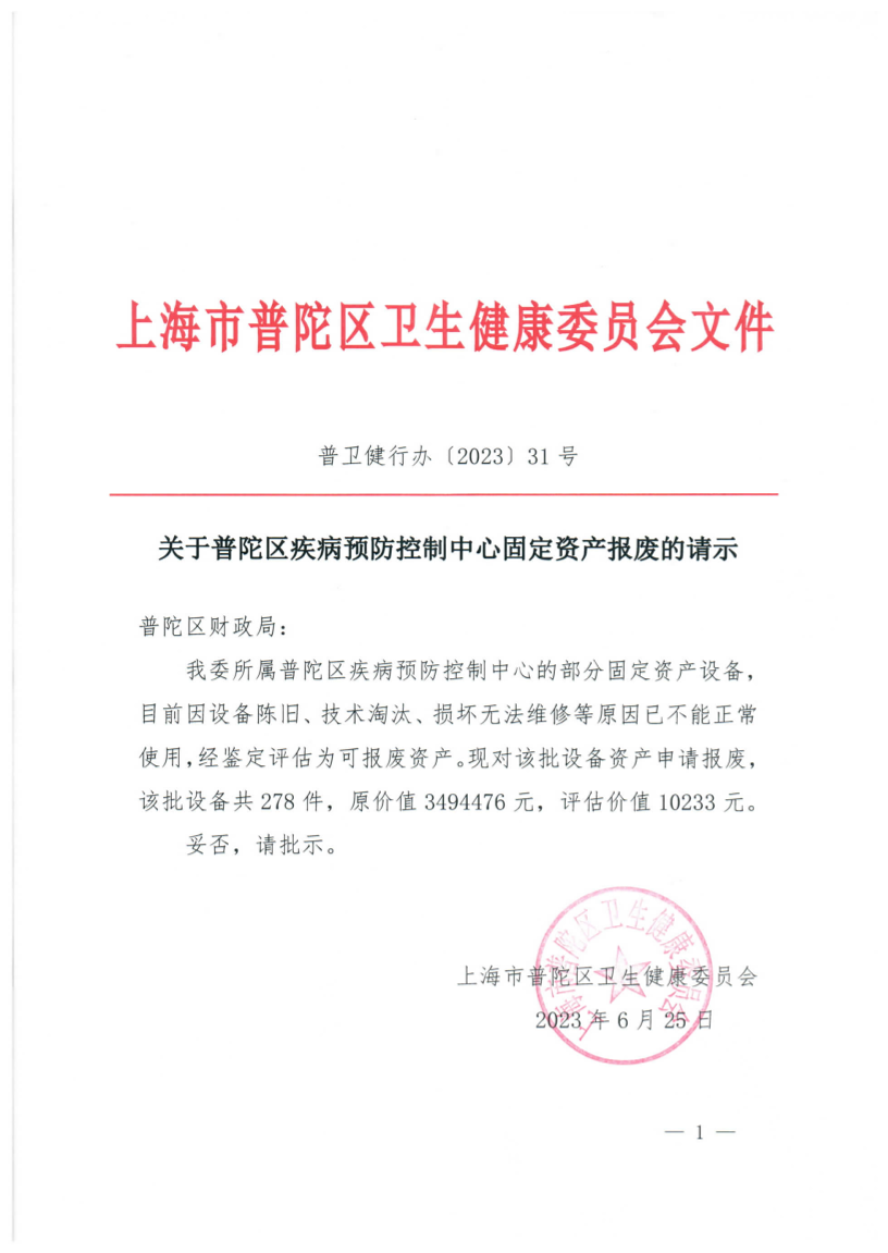 关于普陀区疾病预防控制中心固定资产报废的请示