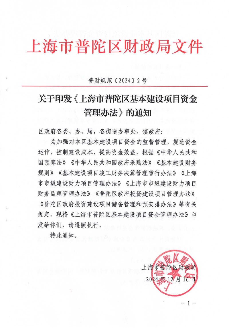 关于印发《上海市普陀区基本建设项目资金管理办法》的通知