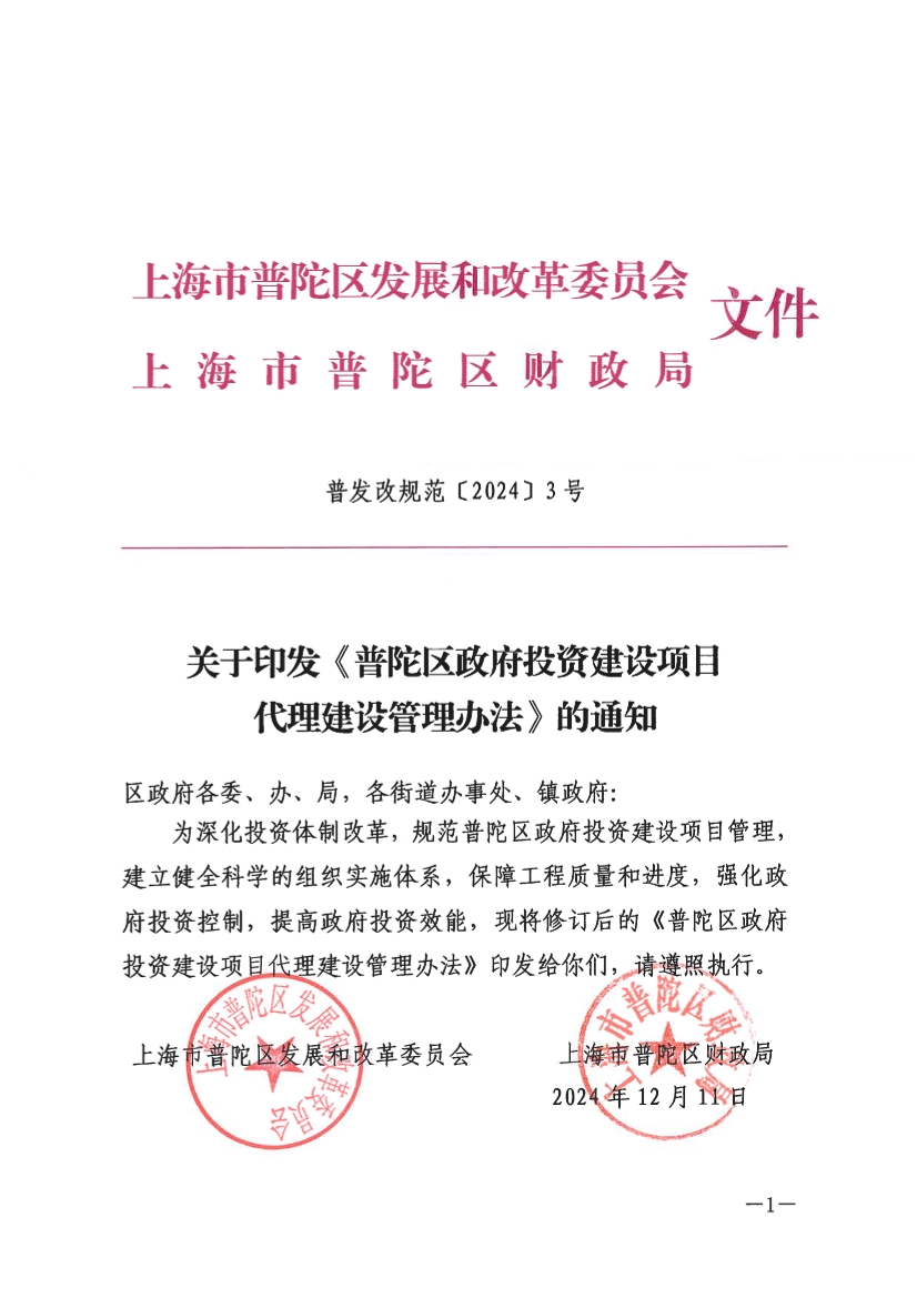 关于印发《普陀区政府投资建设项目代理建设管理办法》的通知