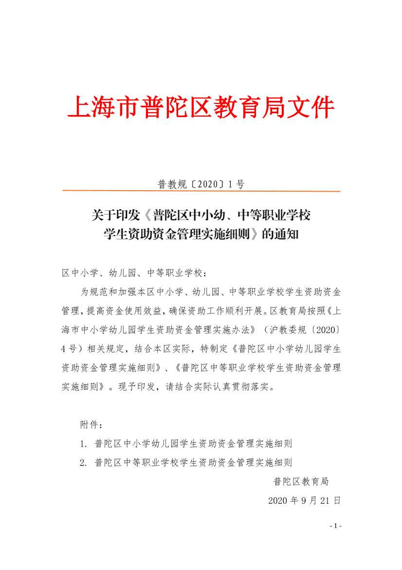1. 普陀区中小学幼儿园学生资助资金管理实施细则