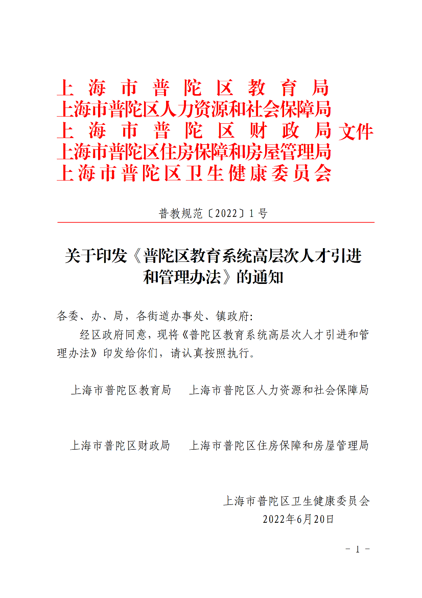 关于印发《普陀区教育系统高层次人才引进和管理办法》的通知